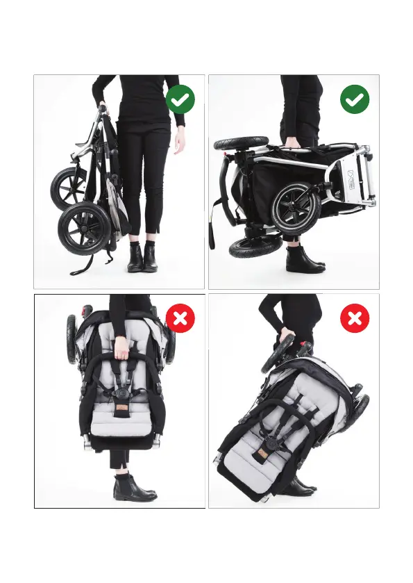 Mountain Buggy Mini - Carrying the Folded Buggy; Correct Carrying Method; Incorrect Carrying Methods