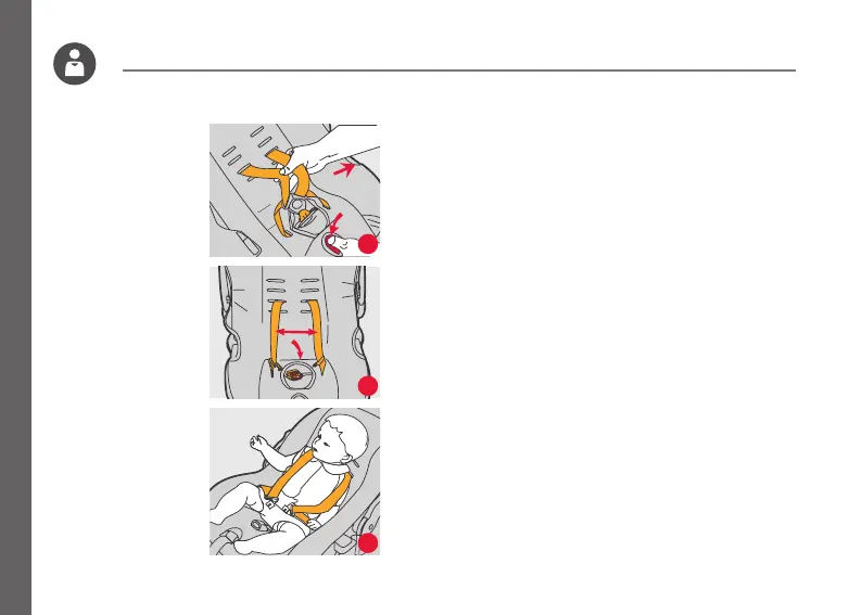 properly secure the child. Slide shoulder straps over the