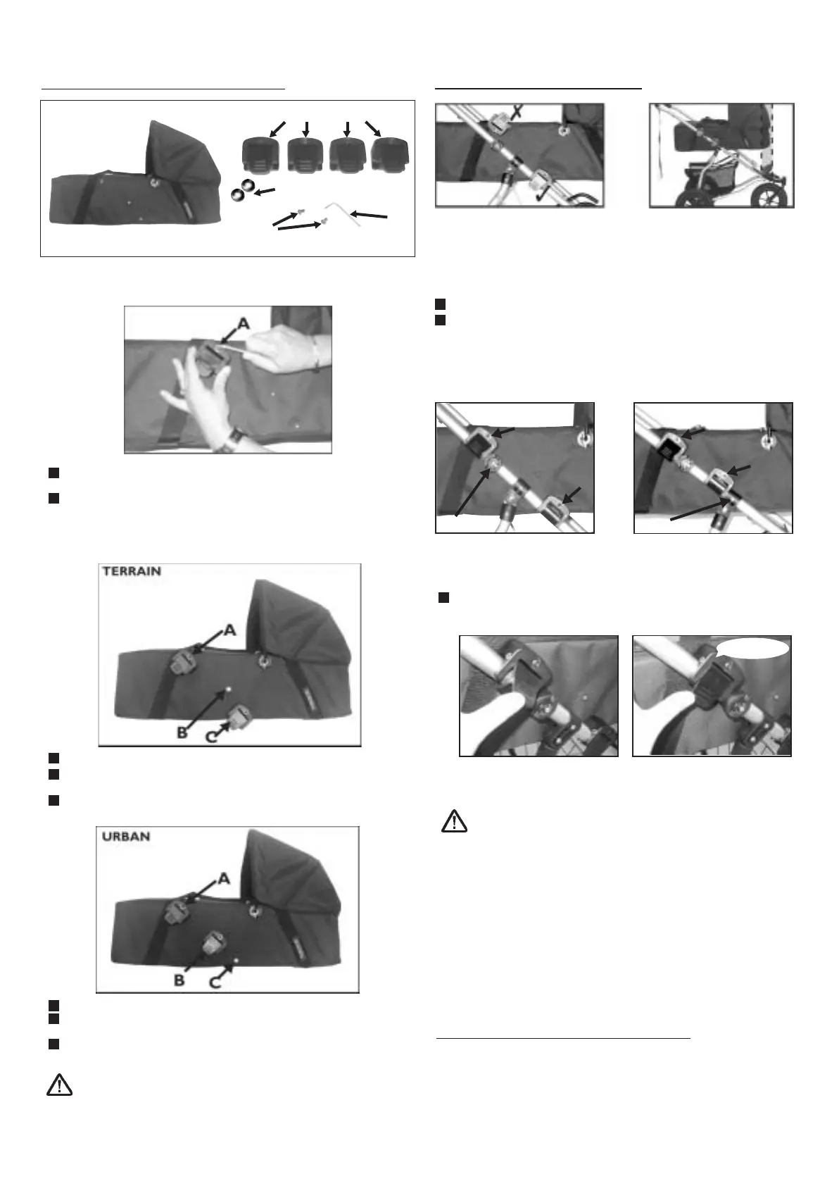 Place Carrycot onto frame, firmly pushing Snap Locks into position,