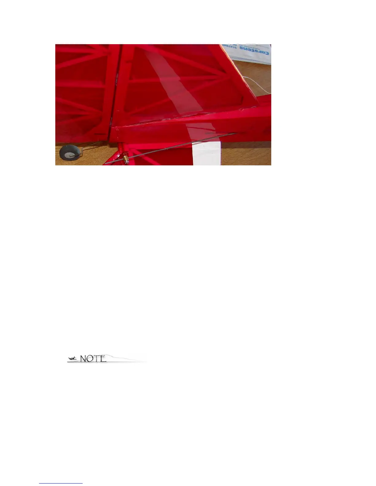 hole in 1/16” plywood part on the back bottom of the fuselage. Maneuver the rudder so that