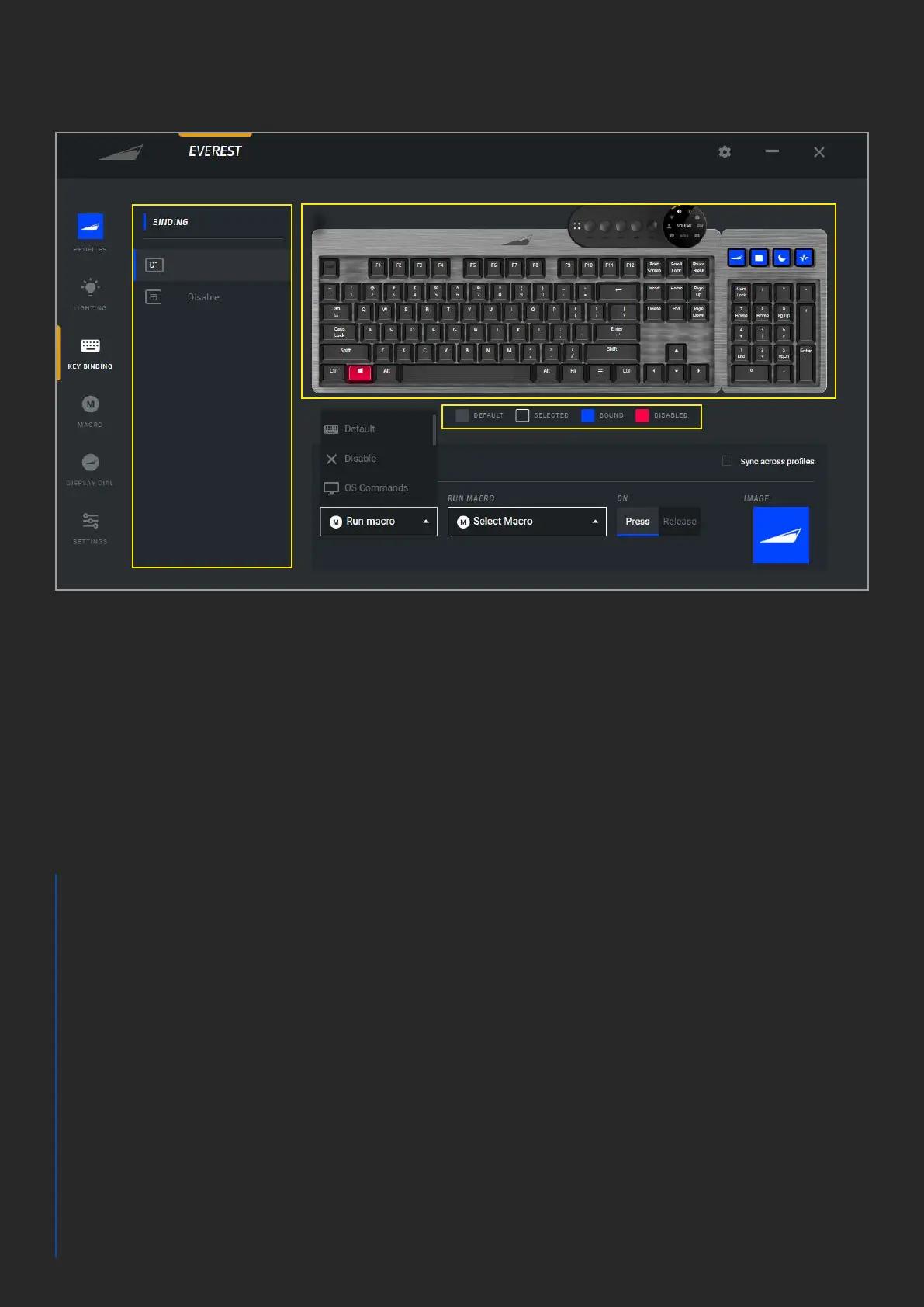 3. To select a key for rebinding, click on the