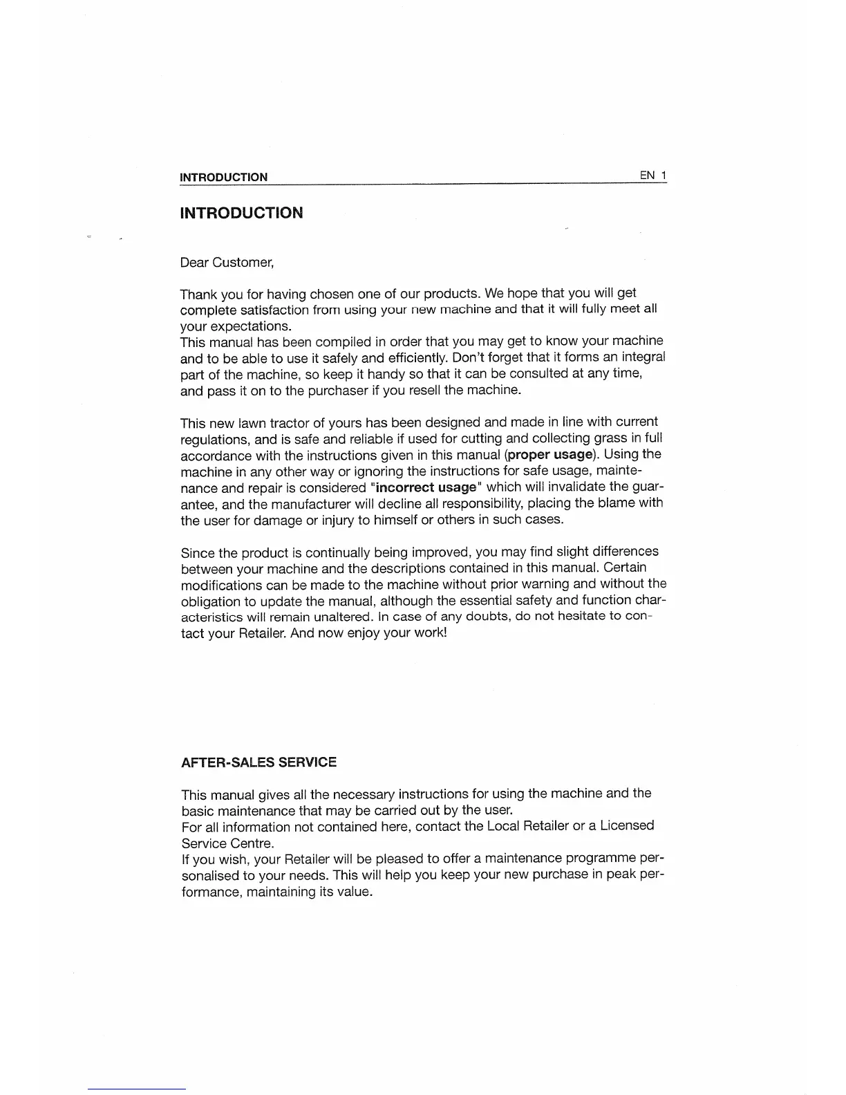 Mountfield 1436M H - Introduction and After-Sales Service; After-Sales Service