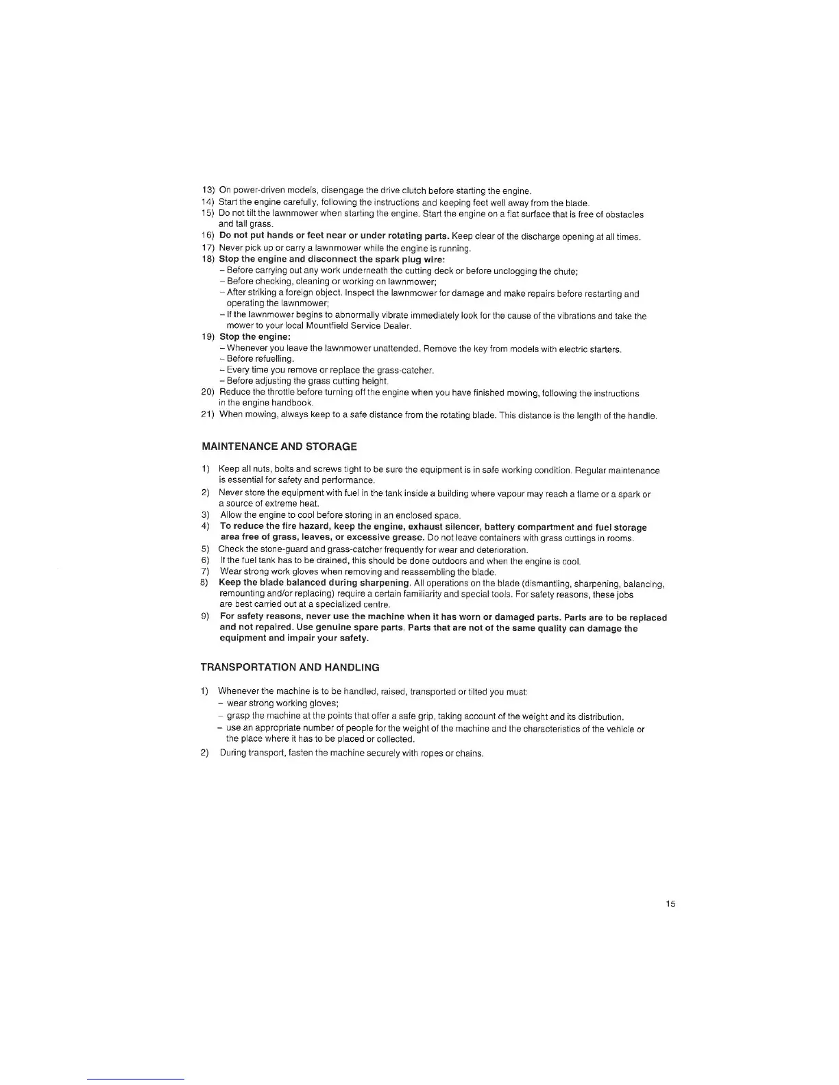 Mountfield HP180 - Maintenance and Storage; Transportation and Handling