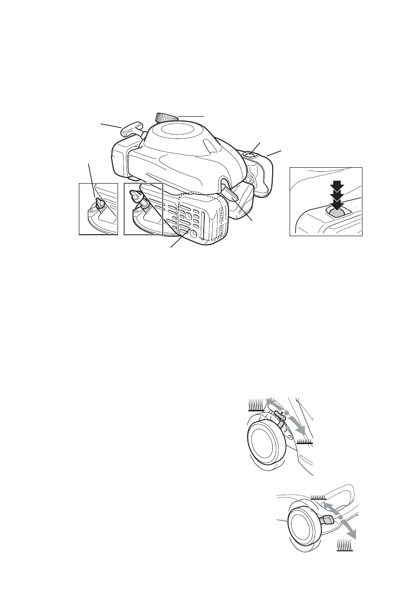 • Adjust the cutting height lever by pulling outwards and