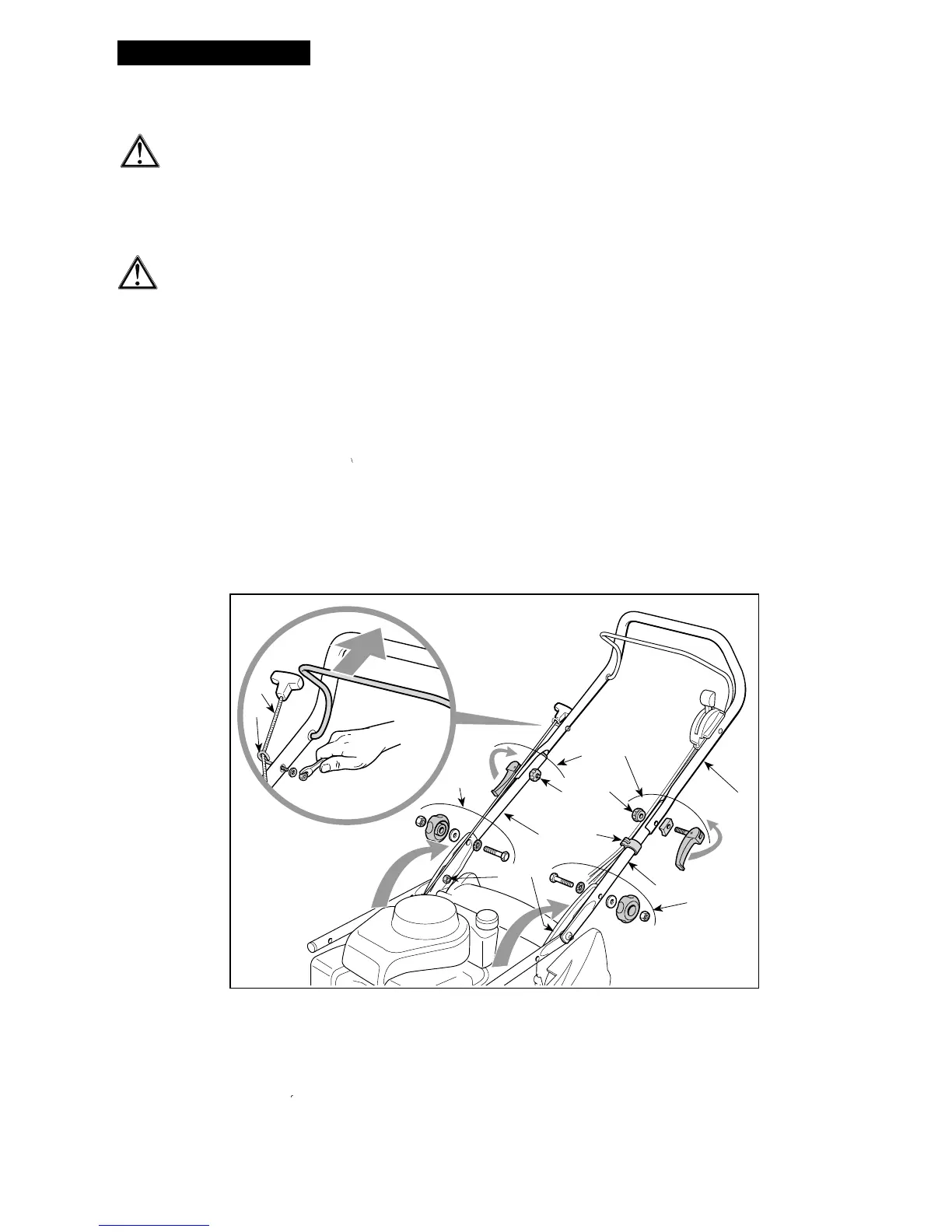 Fit the upper part of the handle (4) to the lower ones (2) by means of the clamps (5), as shown. The ring nuts