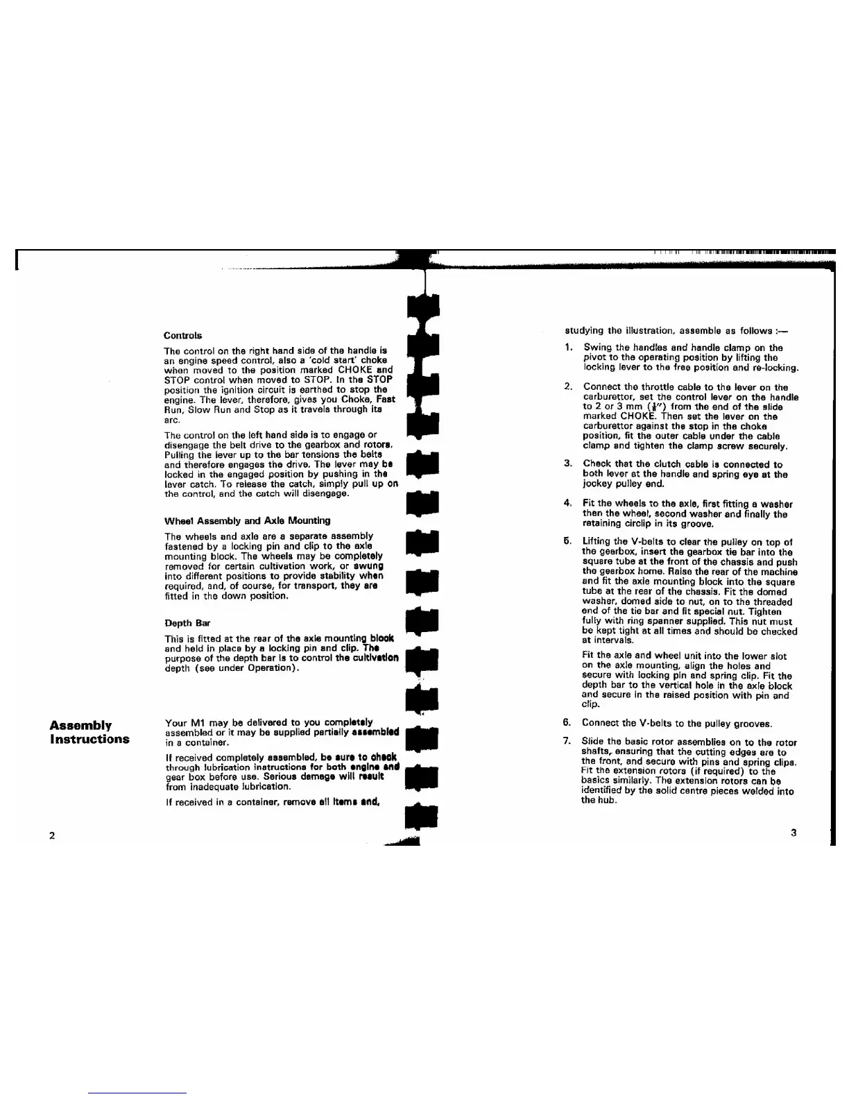 Mountfield M1 - Assembly Instructions; Control Operation; Wheel and Axle Mounting; Depth Bar Installation