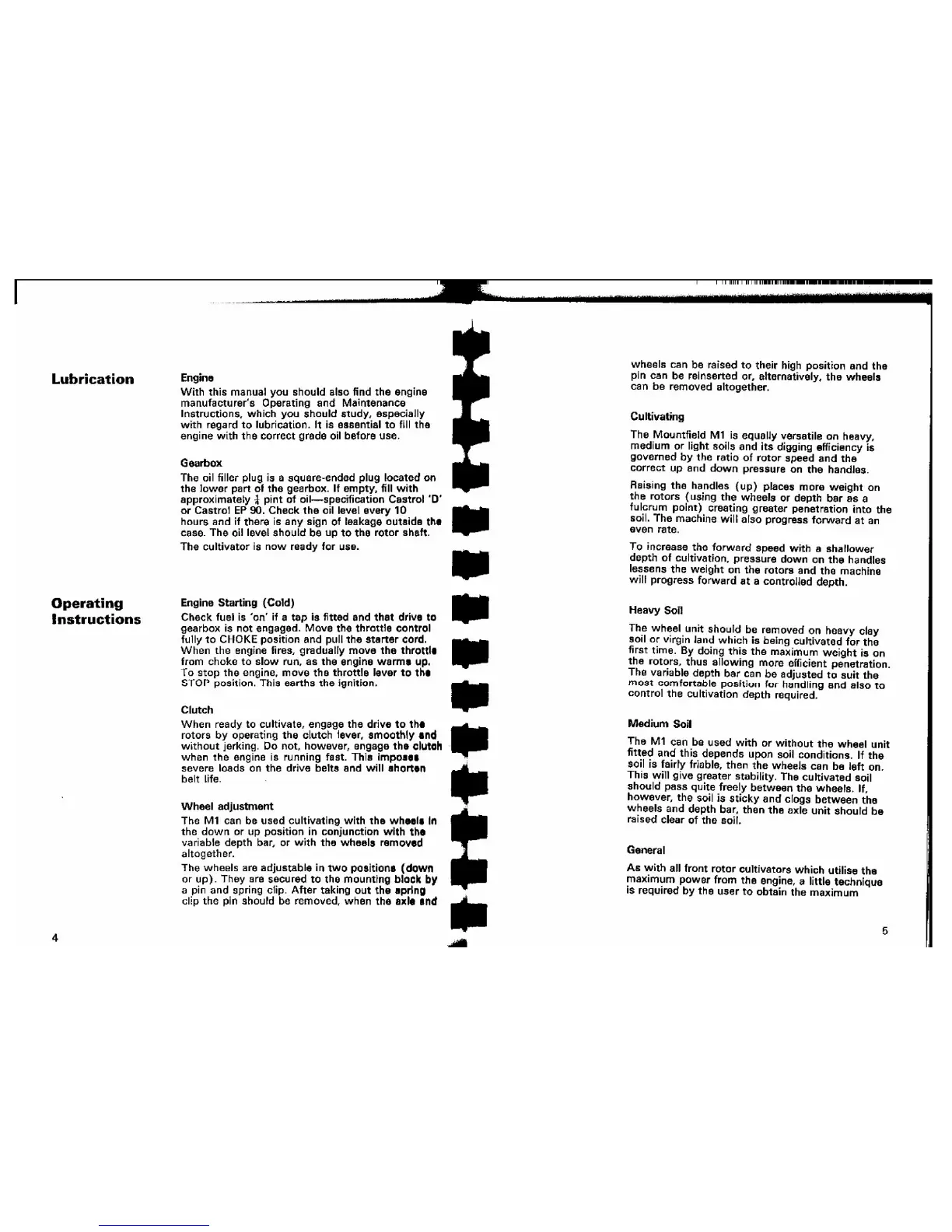 Mountfield M1 - Lubrication and Operation; Lubrication Guide; Starting and Clutch Engagement; Wheel and Cultivation Adjustments