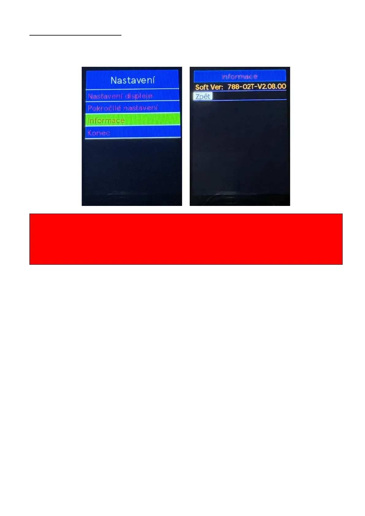 Pomocou tlačidiel "+" alebo "-" vyberte ponuku Informácie, aby sa zobrazila verzia softvéru