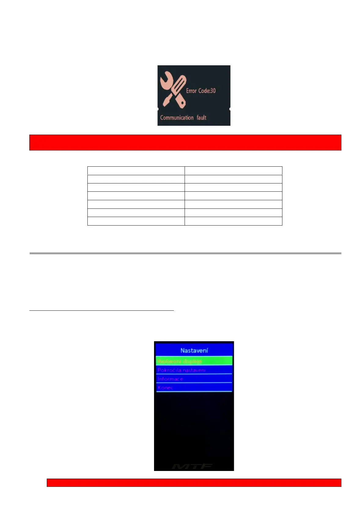 textovej časti displeja sa zobrazí príslušný kód chyby. Tu sa zobrazí detail chybového hlásenia