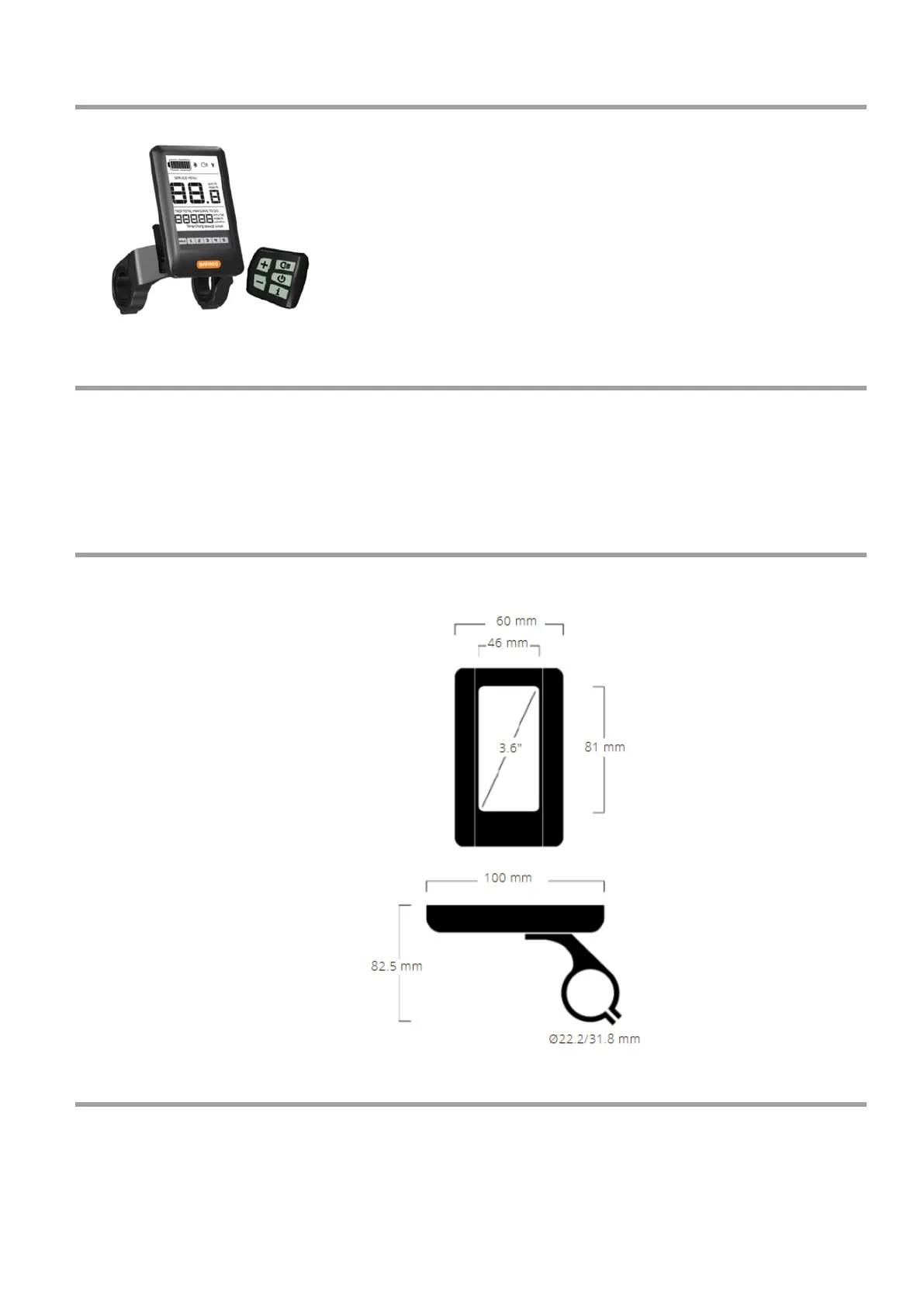 Vyobrazenie a rozmerový nákres displeja (rozmery sú uvedené v mm)