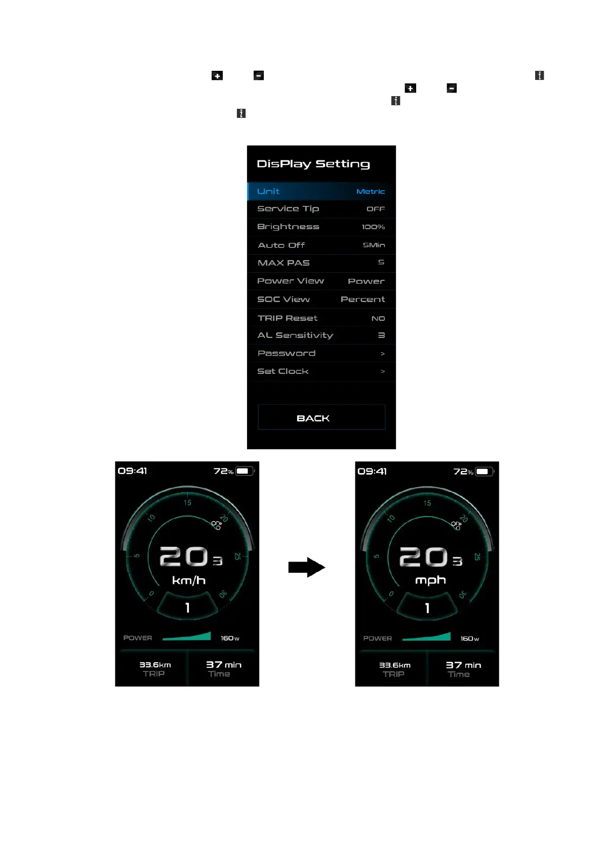 ◆ Jednotky – přepínaní mezi kilometry a mílemi