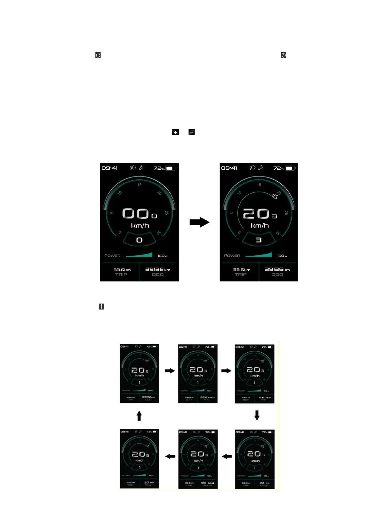 When the display is turned on, press the or (<0.5S) button to switch to the support level, the