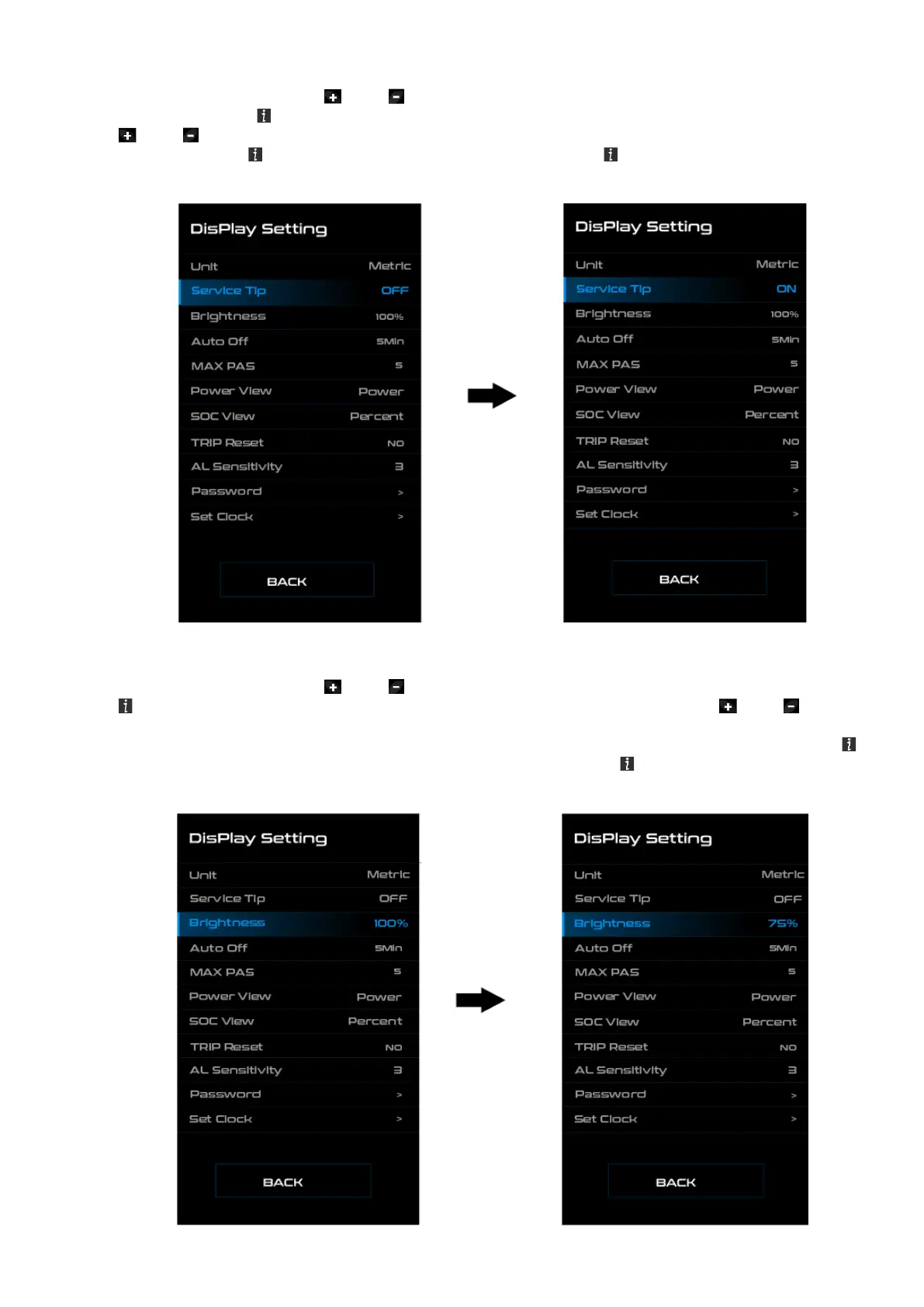 Krátkým stisknutím tlačítka nebo a vyberte nabídku Service Tip/Servisní tip. Krátkým