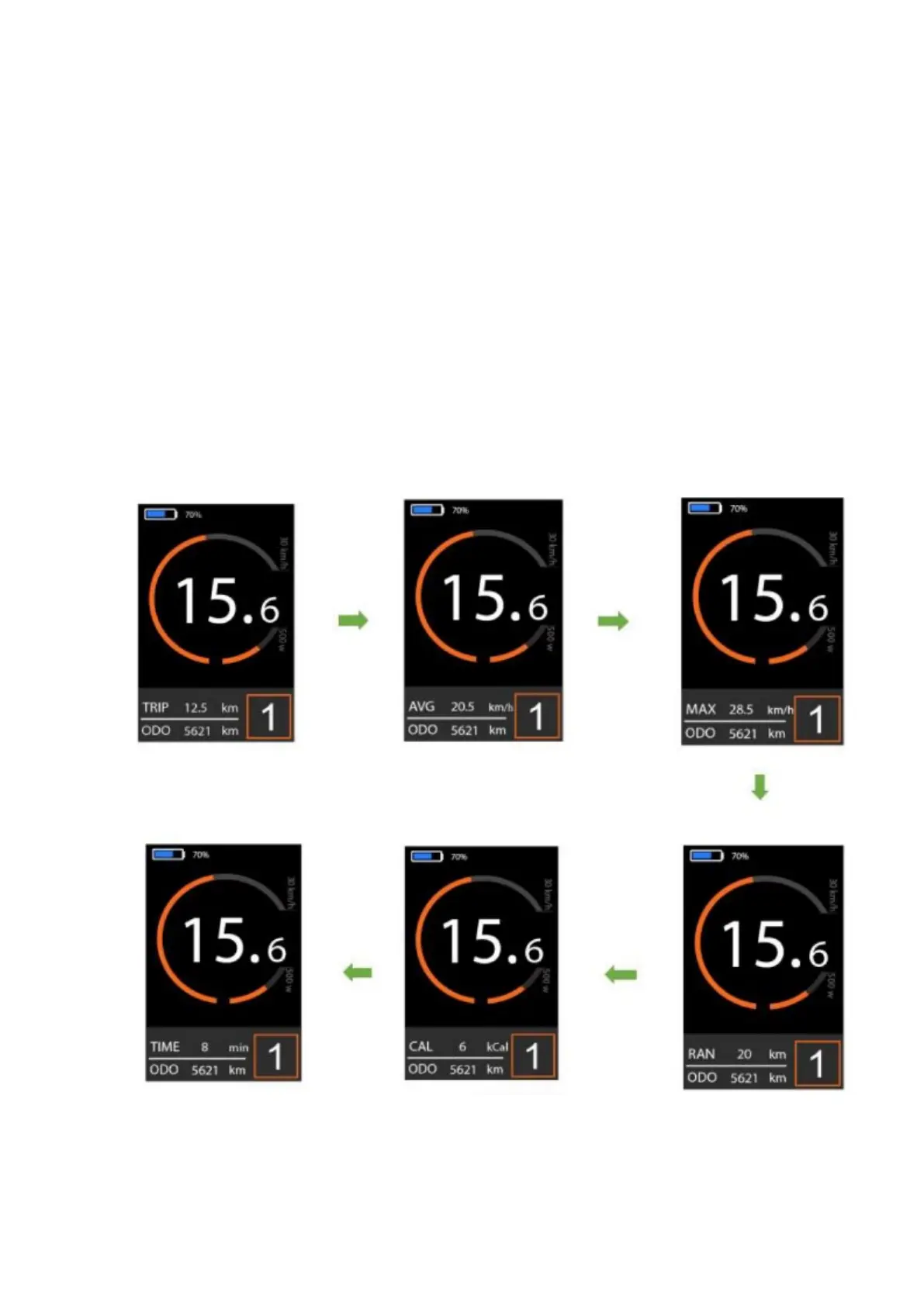 After switching on the e-bike system, the display shows the current speed and the daily distance