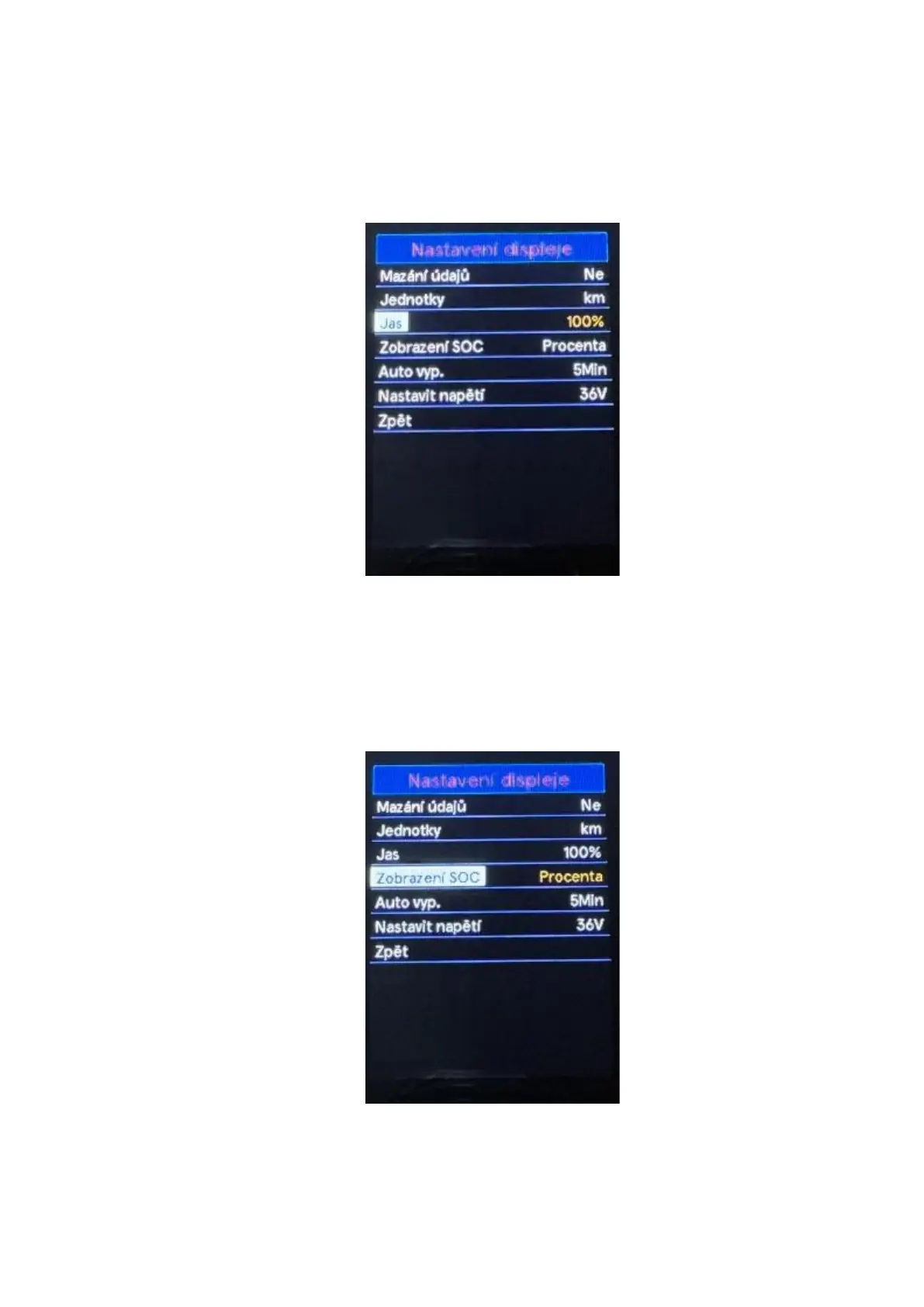 level is percentage. With the "+" or "-" buttons you can choose between displaying the voltage