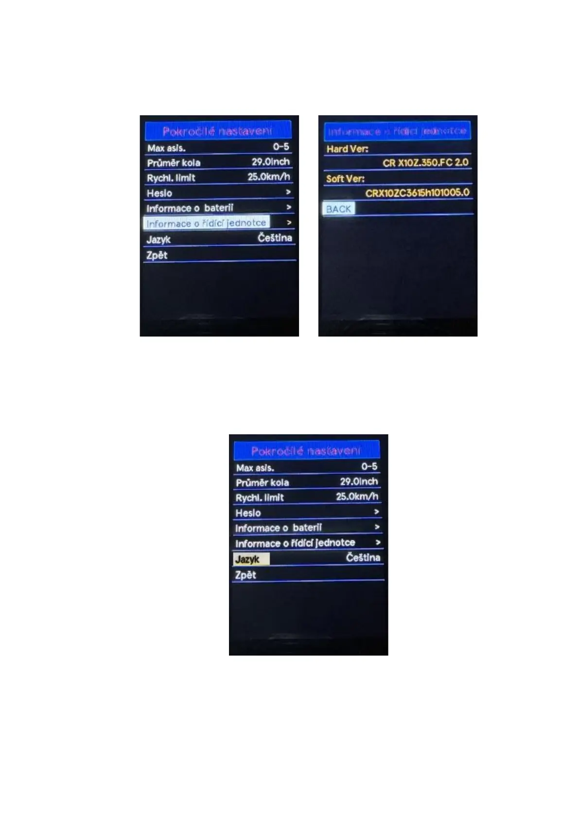 information about the control unit and software version will be displayed. To return to the main