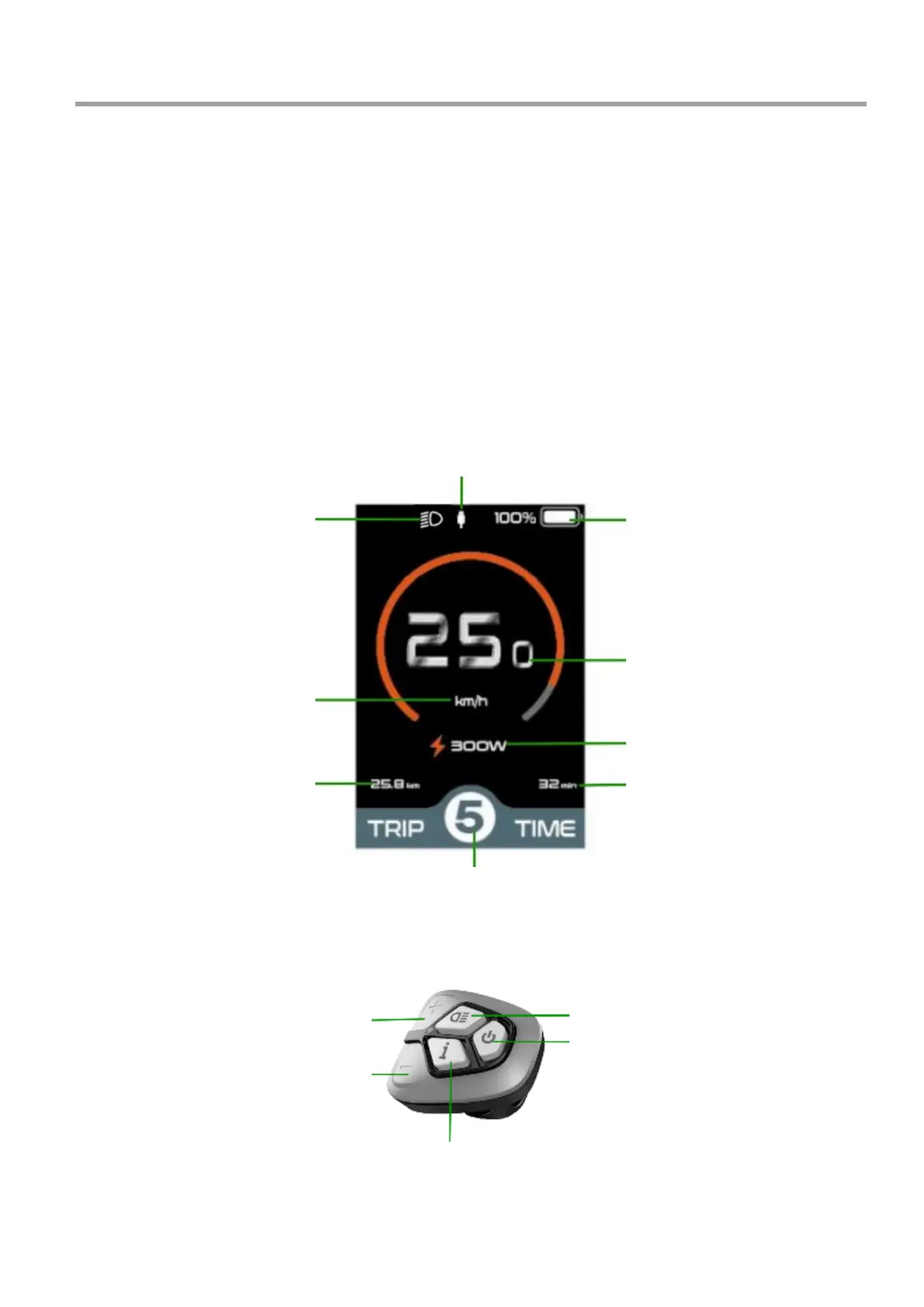 • Setting various parameters (e.g. wheel size, speed limit, battery charge status column, current