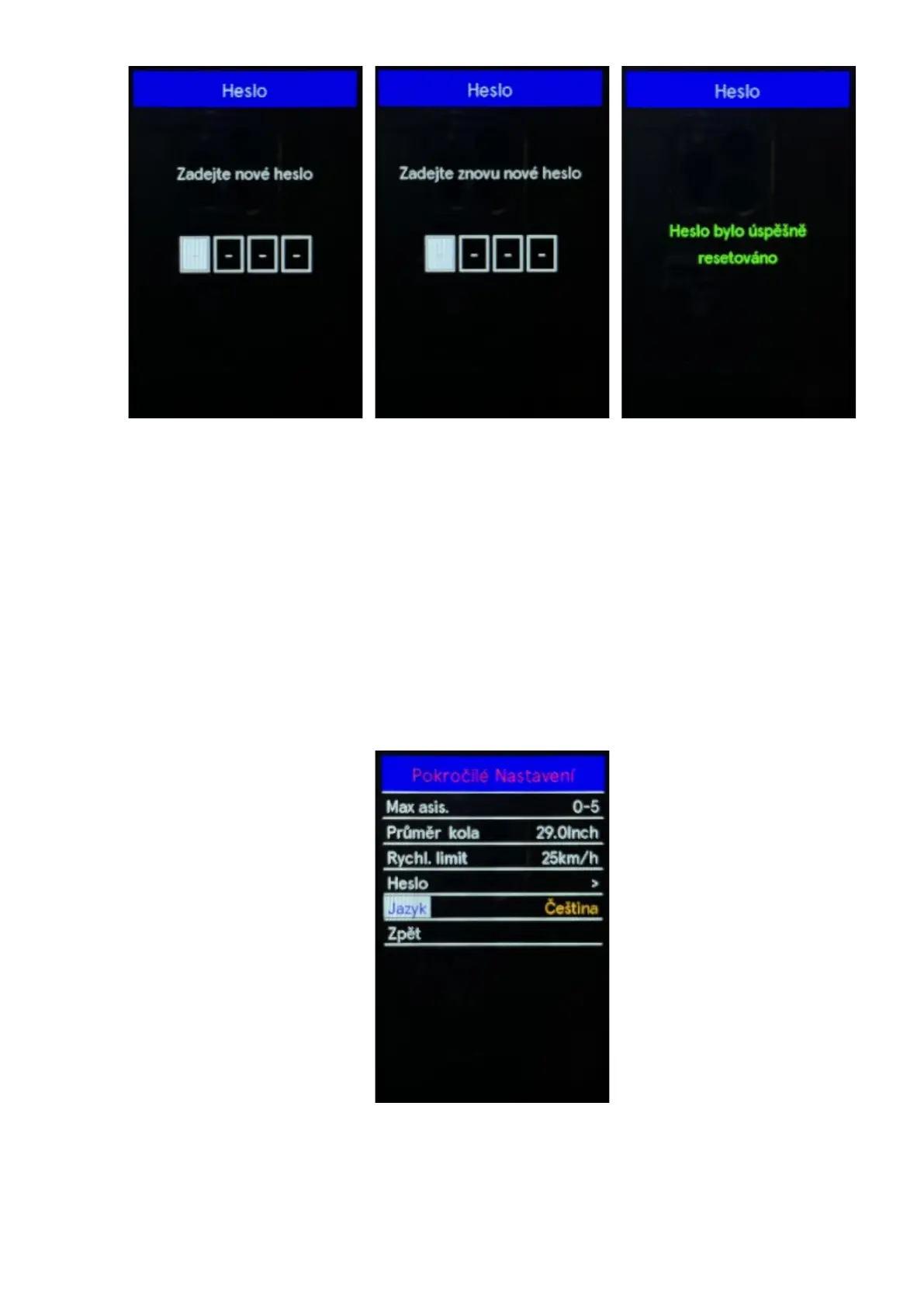 or "-" buttons to select the reset password menu. By pressing the "i" button confirm the option and