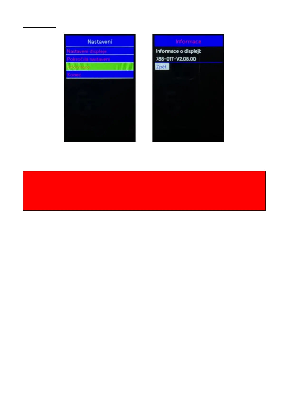 Use the "+" or "-" buttons to select the Information menu by pressing the "i" button confirm the