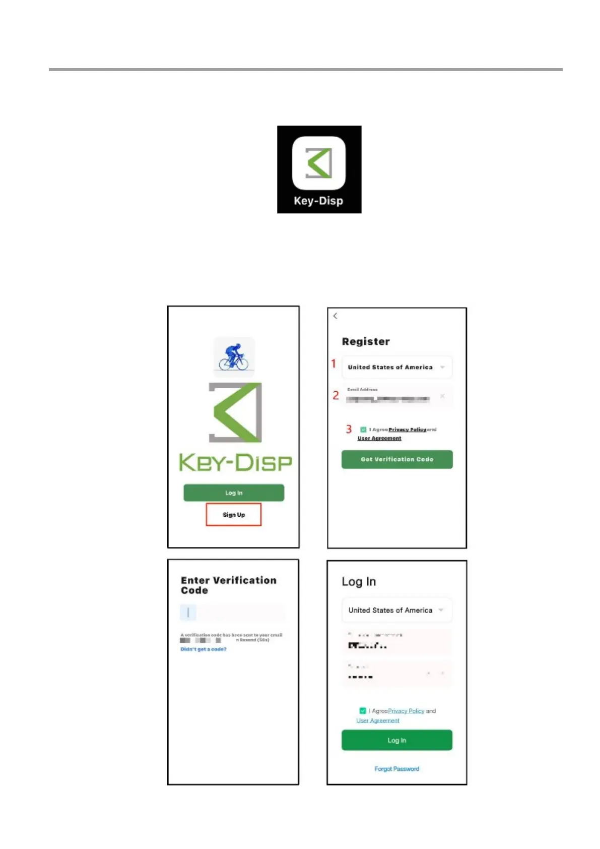 In order to use all functions of Key-Disp app, users should sign up first. Please fill in the required