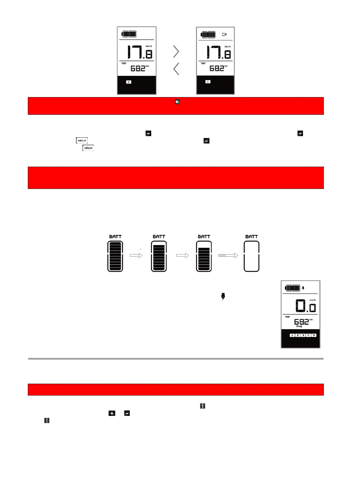 If the front or rear light is not connected, the button can only be used to switch the display backlight