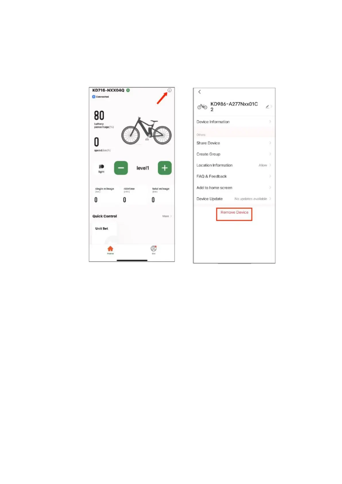 - Pro odebrání spárovaného zařízení klikněte na ikonu i a na další obrazovce pak zvolte Remove