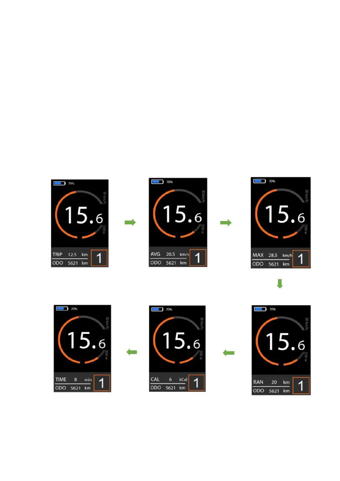 Po zapnutí systému elektrobicykla sa na displeji zobrazí aktuálna rýchlosť a denná vzdialenosť,