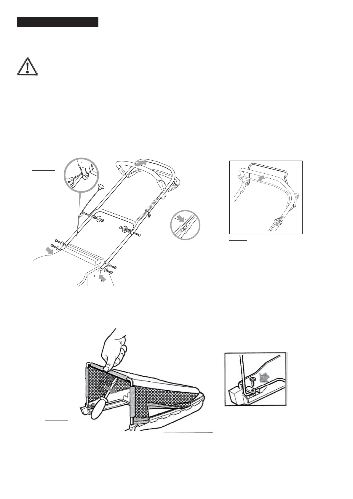 • Remove the plate and washers from the top of the grass collector and clip the plate in place behind the handle.