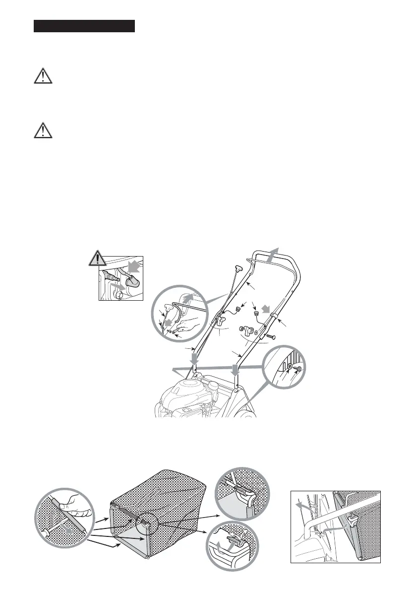 • To t the grass collector onto the mower, lift the rear deector ap and hook the collector onto the pegs on the rear