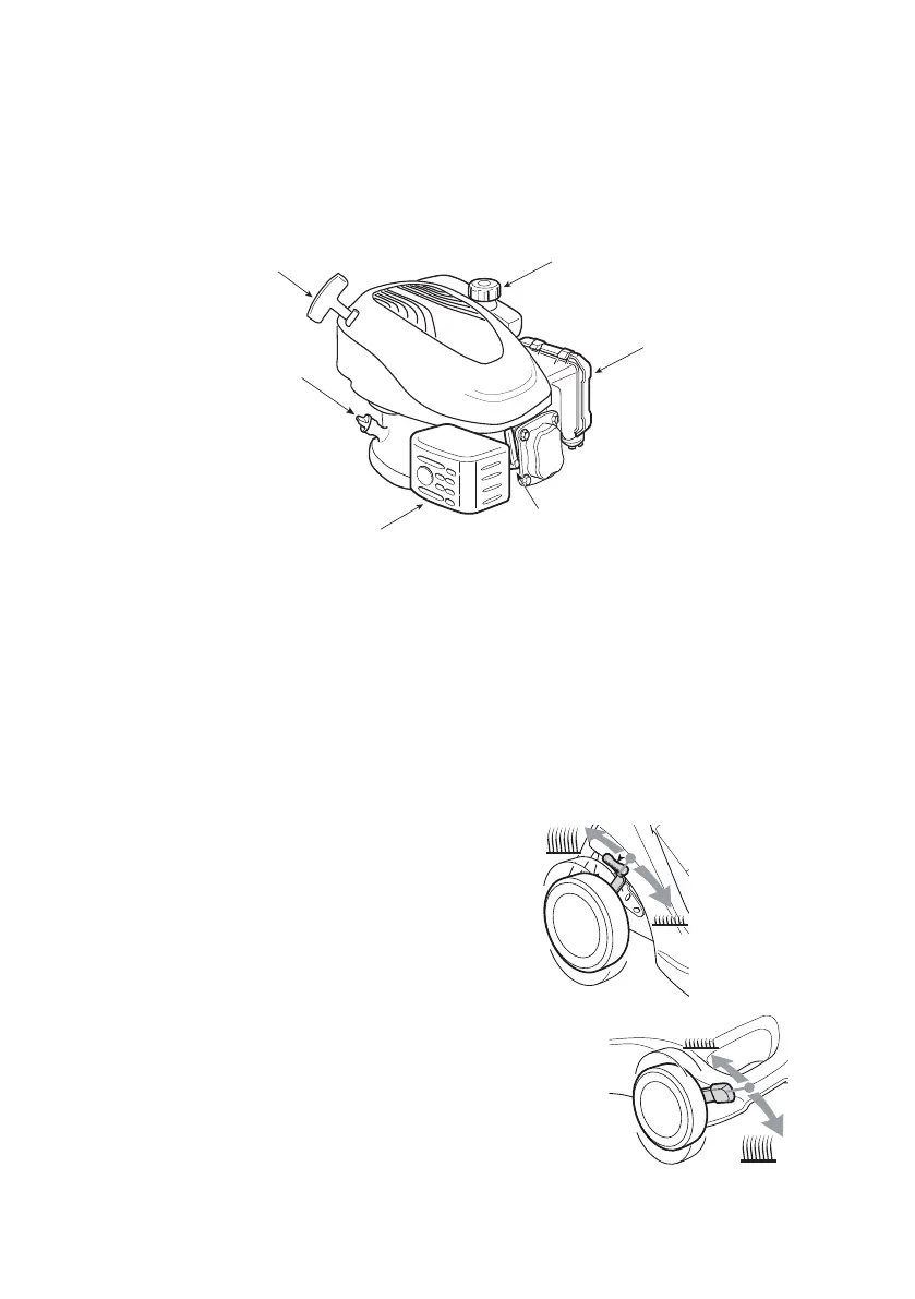 • Put Mounteld 4-stroke, or an SAE 30 oil, in the oil ller (Figure 5). Do not overll, the oil tank capacity is 0,5 litres.