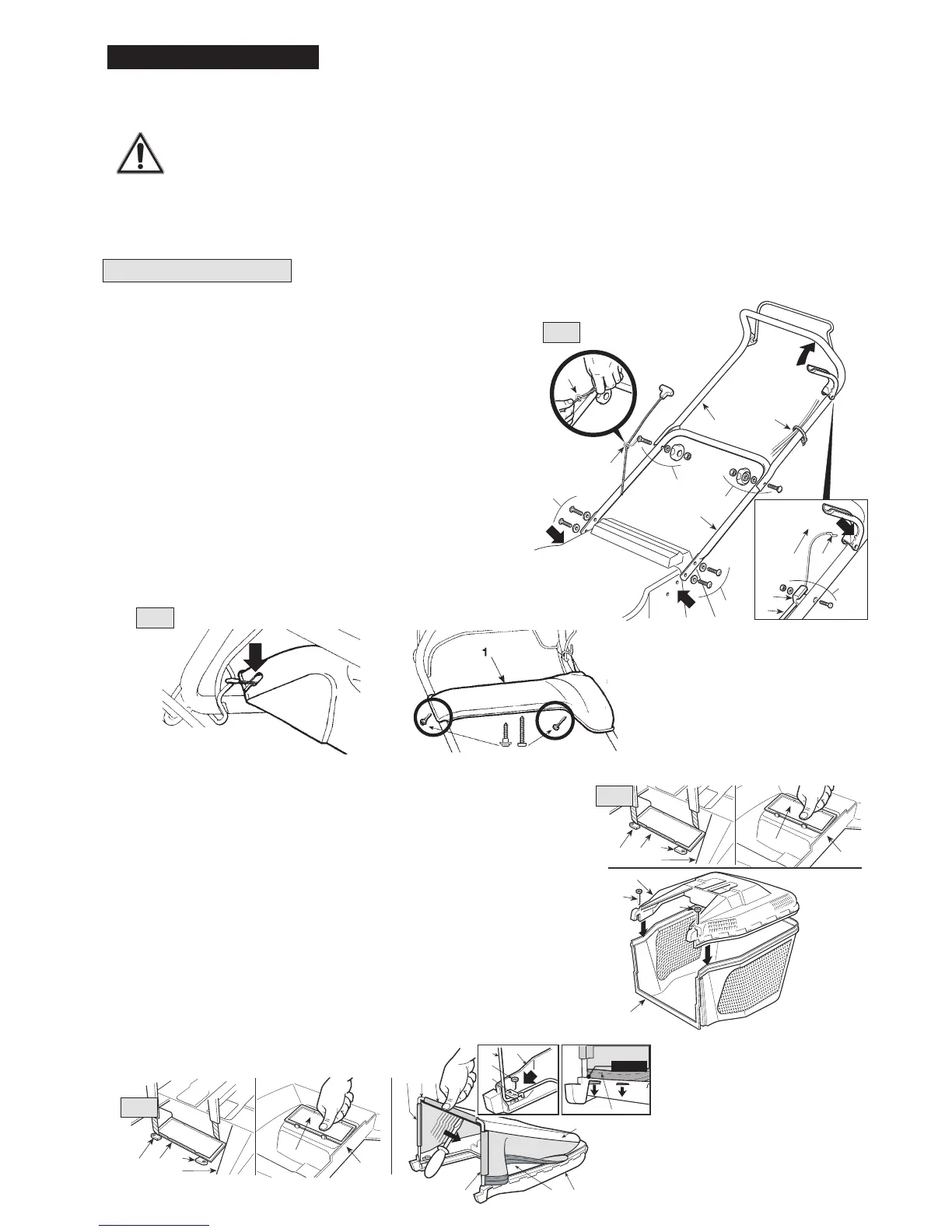 top of the grass-catcher (3) so that it clicks into place. Assemble the two
