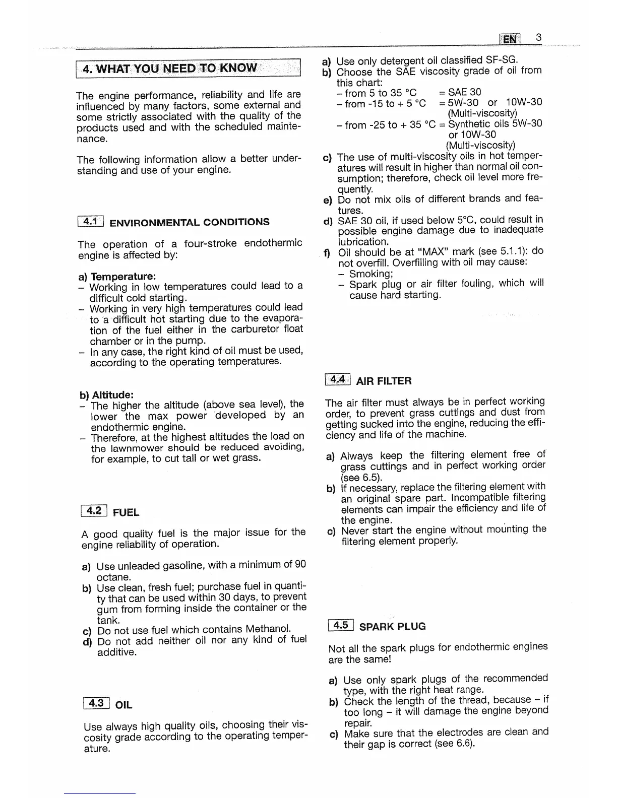 Mountfield SP534-ES - What You Need to Know; Environmental Conditions; Air Filter; Fuel