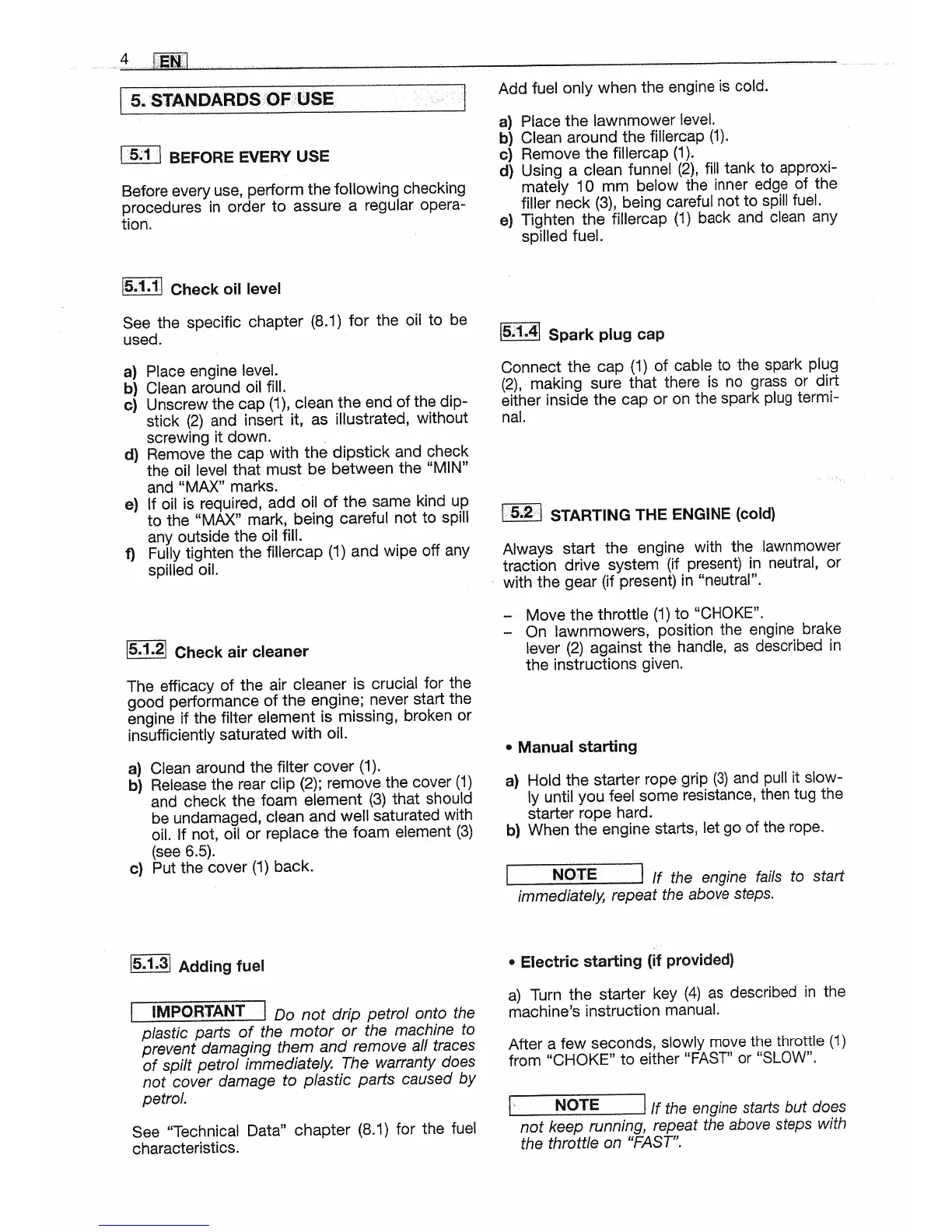 Mountfield SP534-ES - Operational Standards and Checks; Pre-Use Operational Checks; Engine Oil Level Verification; Fueling Procedure Guidelines