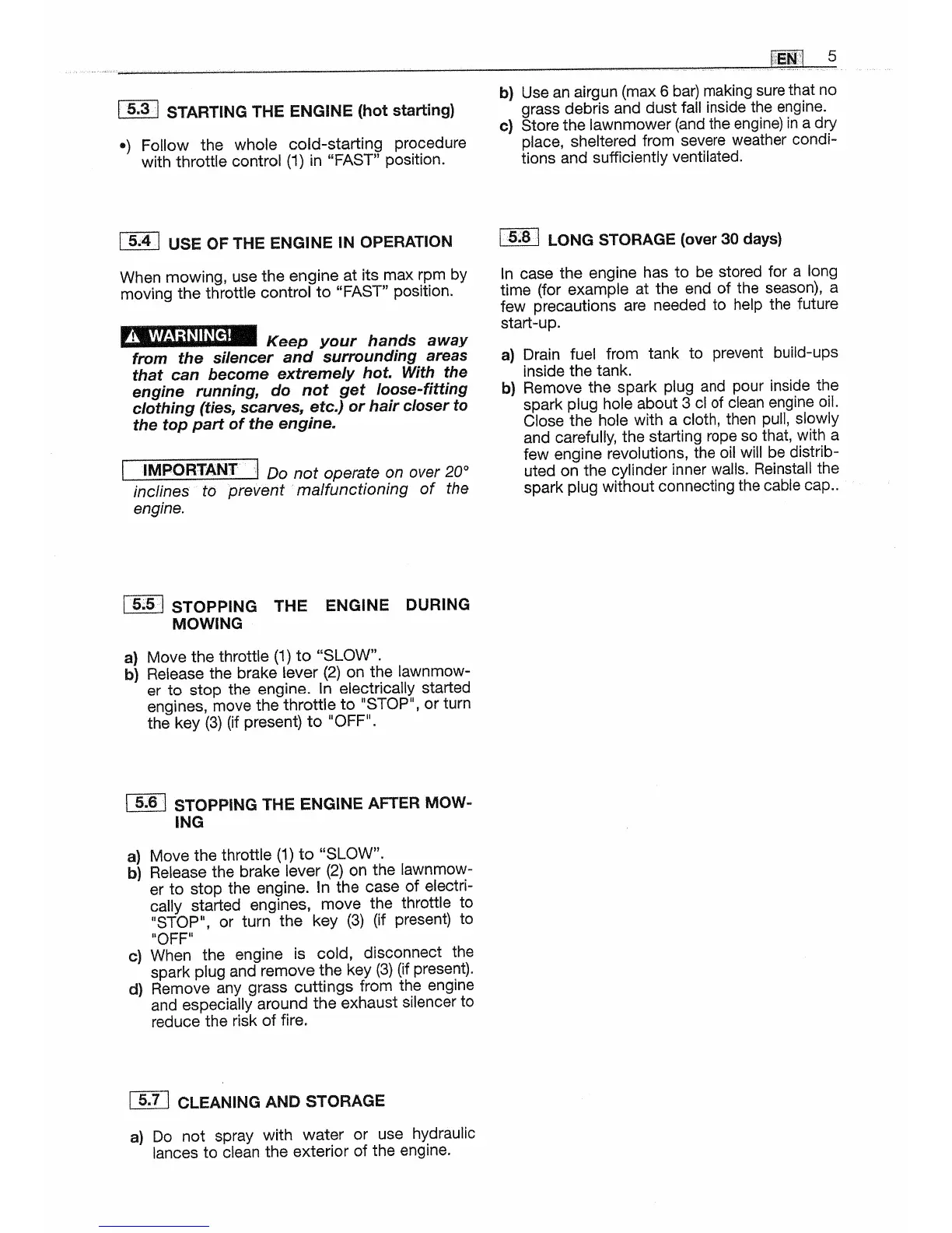 Mountfield SP534-ES - Engine Operation and Stopping; Engine Operation and Warnings; Hot Engine Starting Procedure; Stopping Engine During Mowing