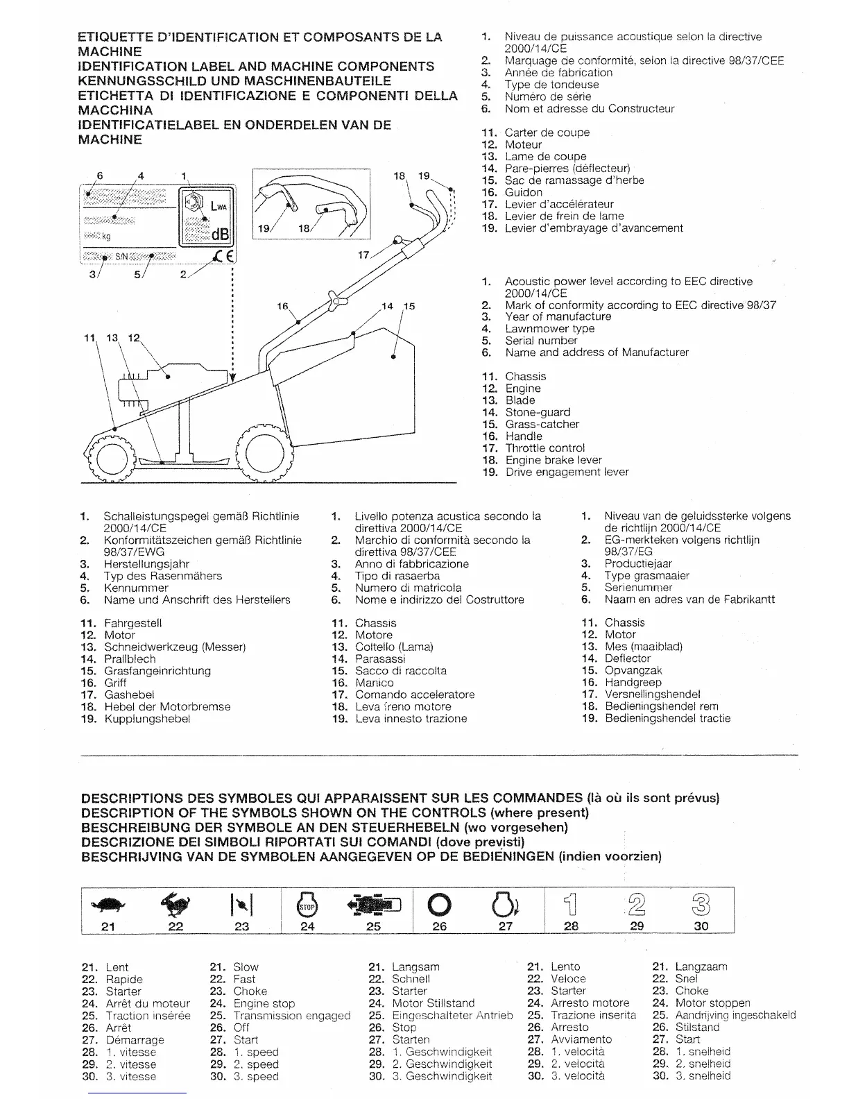 Mountfield SP534-ES - Machine Identification and Components; Component Identification; Control Symbols Explained