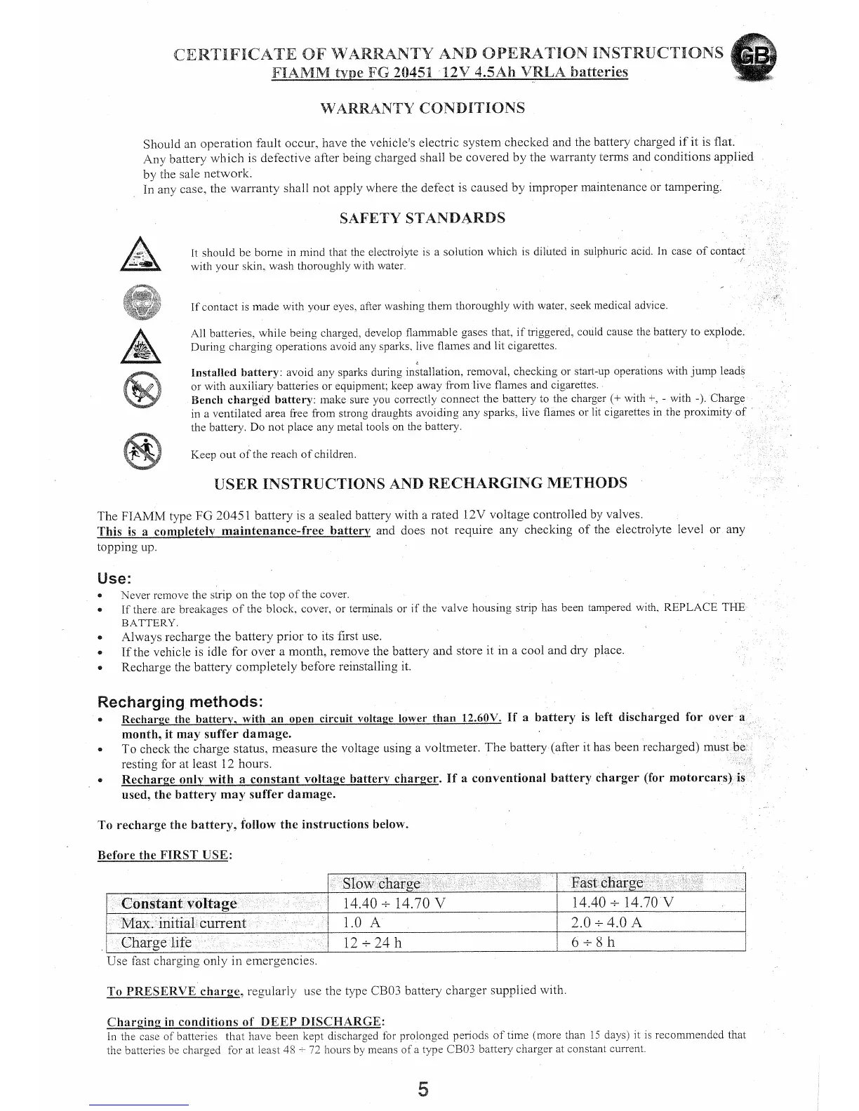 Mountfield SP534-ES - Battery Warranty and Operation; Battery Safety Standards; Recharging Methods
