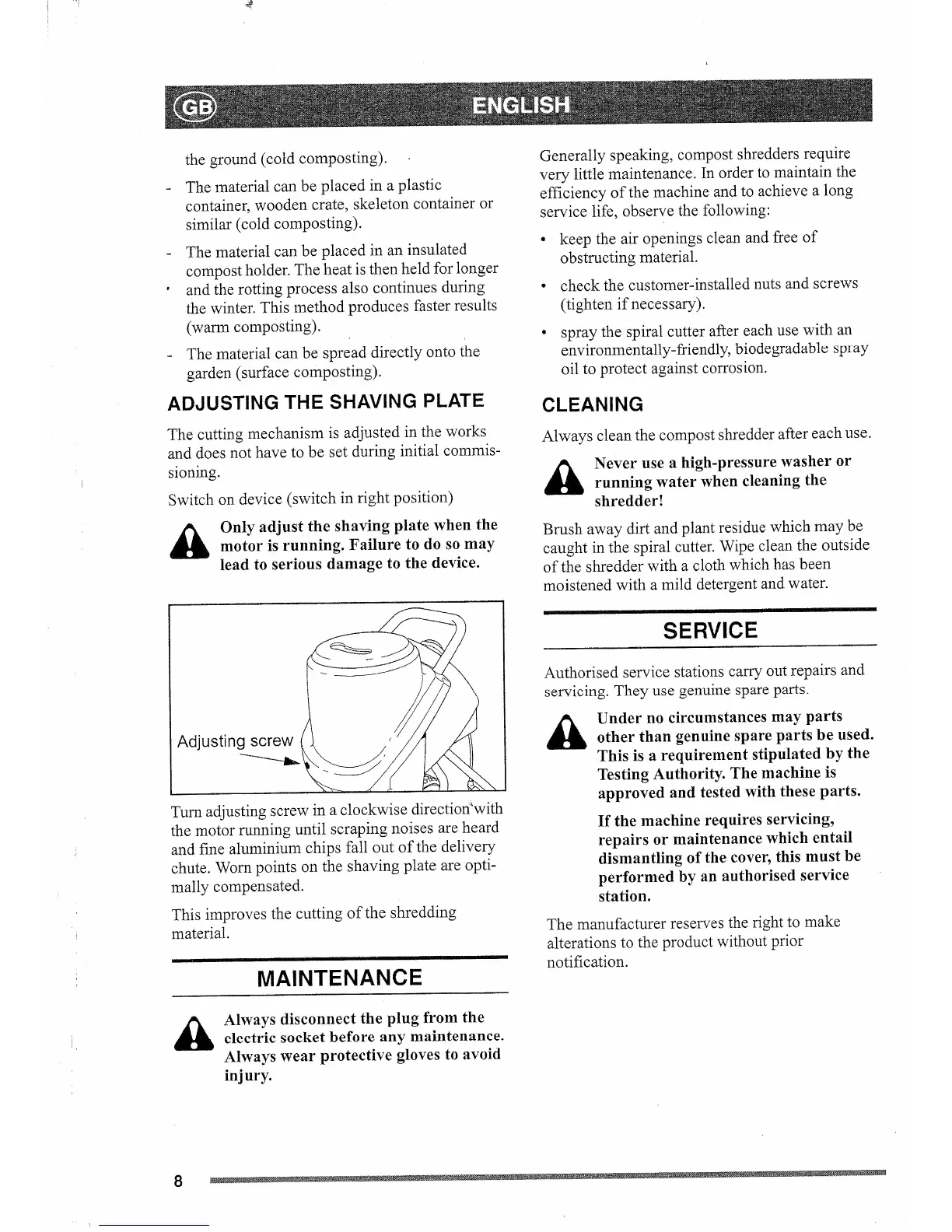 Mountfield V 2200W - Maintenance, Service, and Terms; Adjusting the Shaving Plate; General Maintenance and Cleaning; Service Information