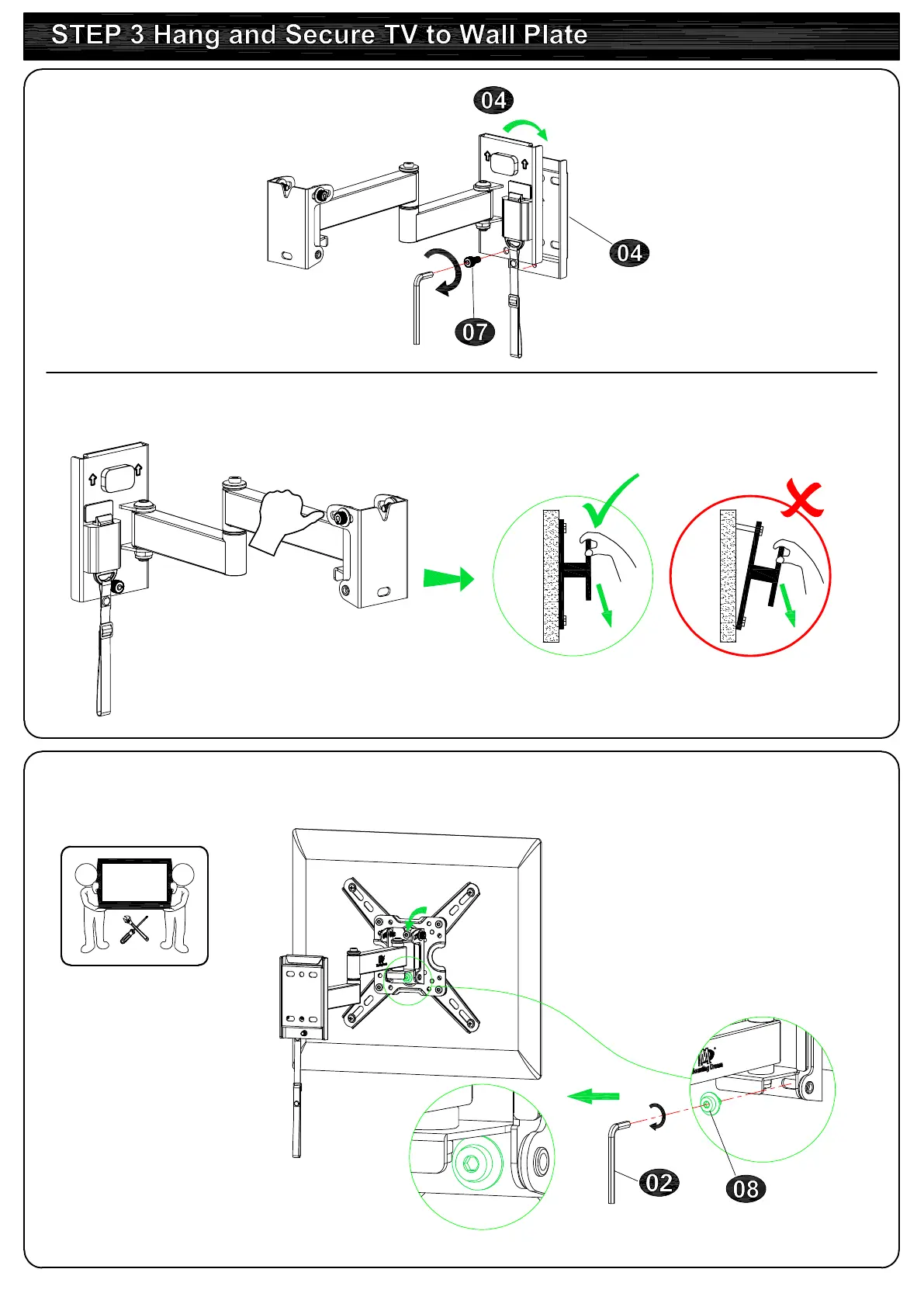 Before hanging TV, please conduct "wall plate installation integrity test" first.