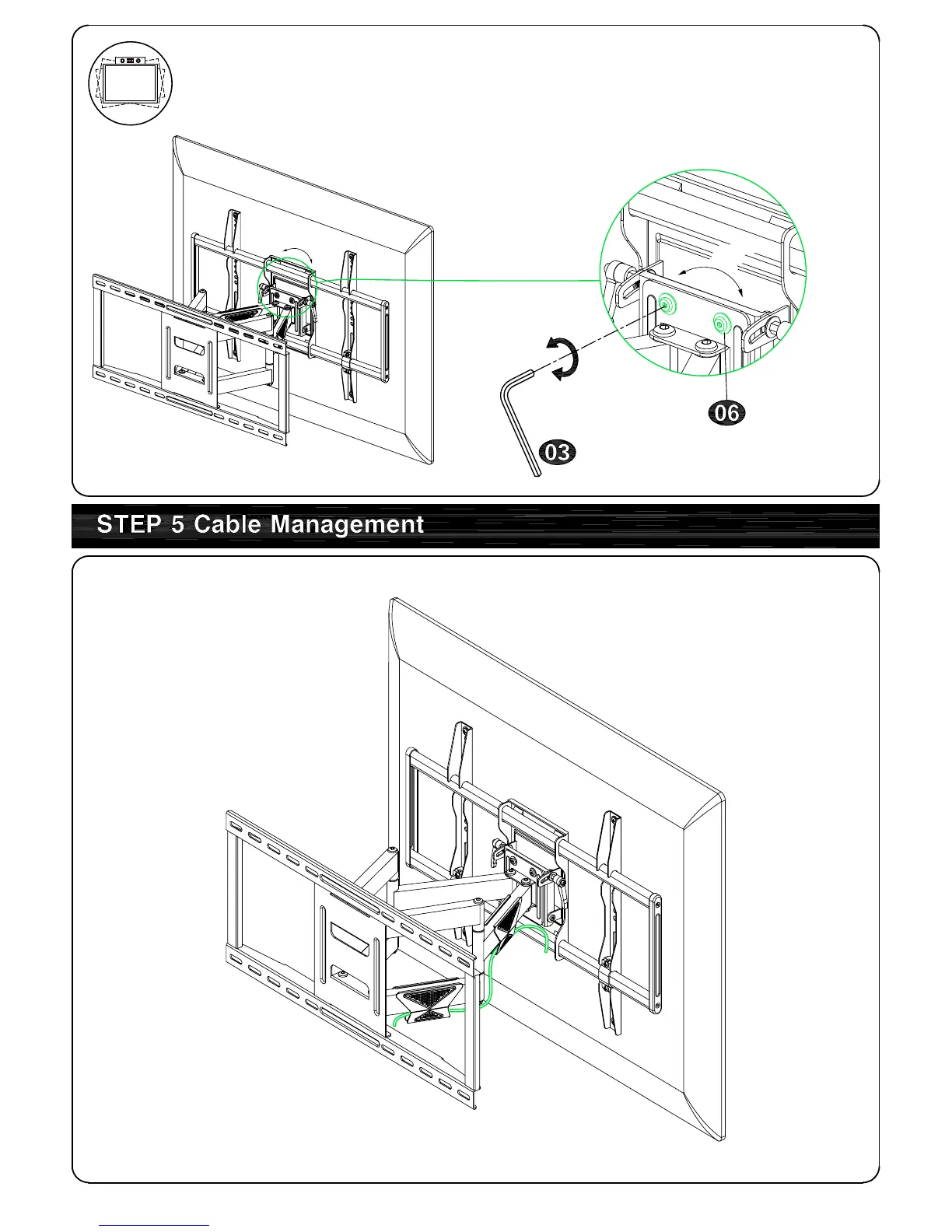 Mounting Dream MD2298 - TV Leveling Adjustment (±3°); Step 5: Cable Management