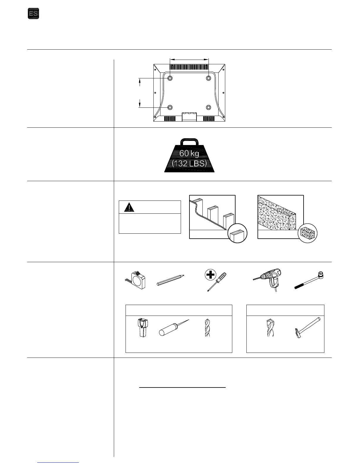 ● Este producto es apto para paredes con pilares de madera, y muro de hormigón sólido - No