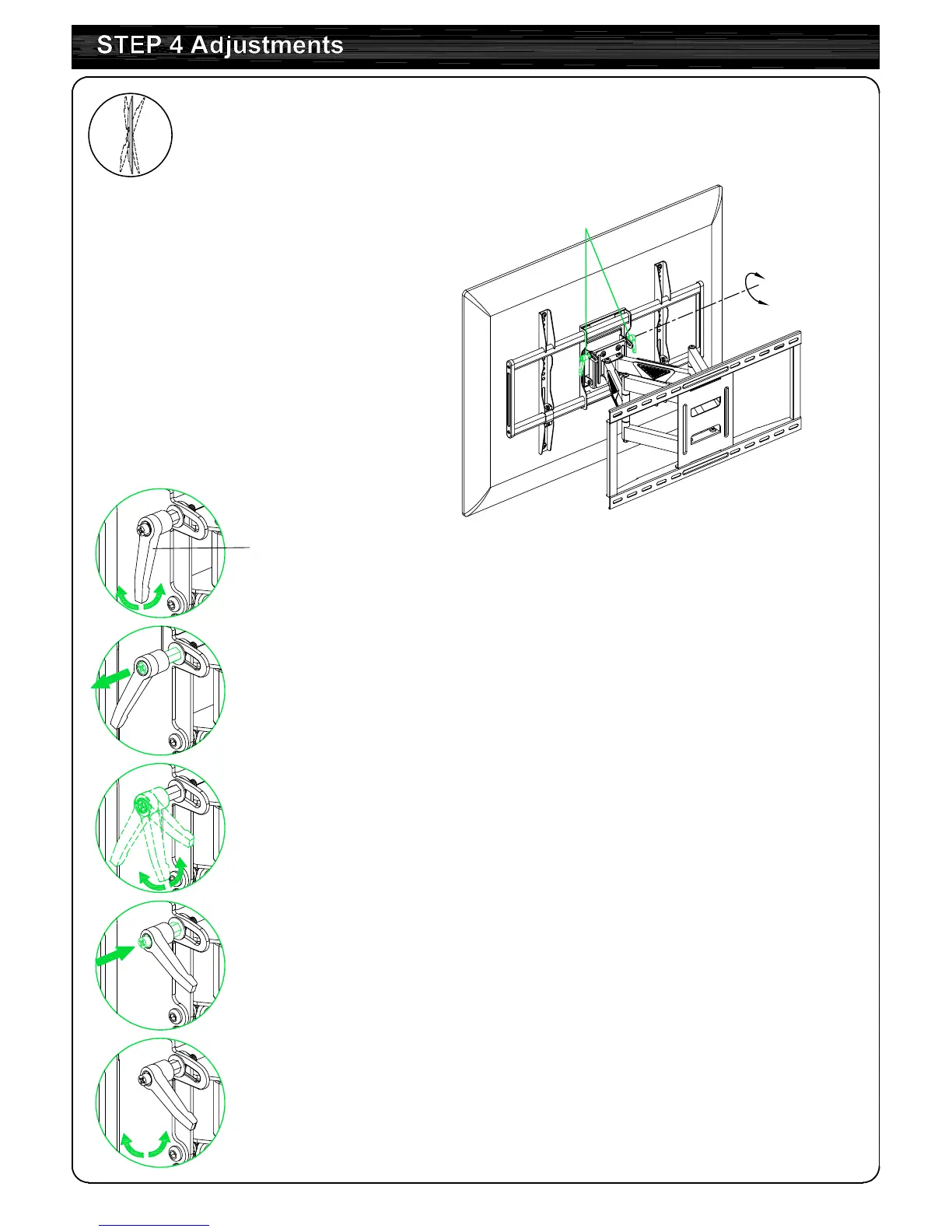 Loosen handle, adjust TV to your desired position,
