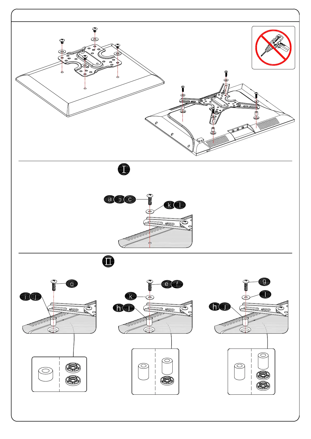 Tips: If you need to combine M6(g) or M8(d) screw with 2.5mm spacer(j), you have to
