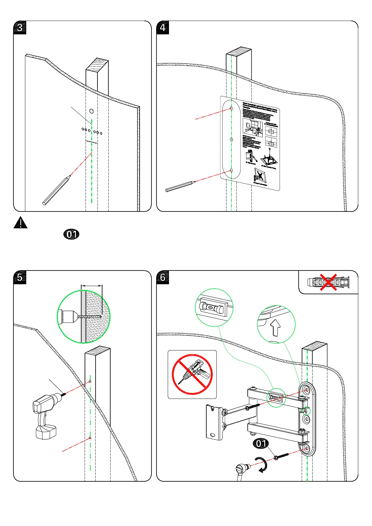 All 2 lag bolts MUST BE firmly tightened to prevent unwanted movement of the wall plate