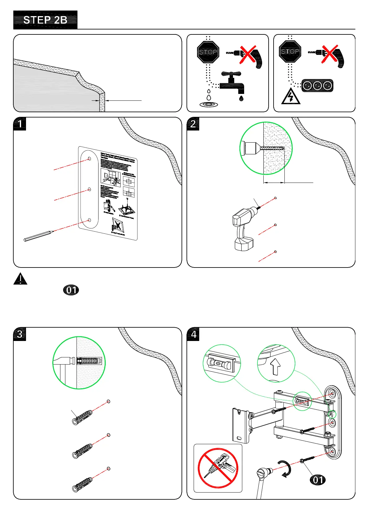 All 3 lag bolts MUST BE firmly tightened to prevent unwanted movement of the wall plate