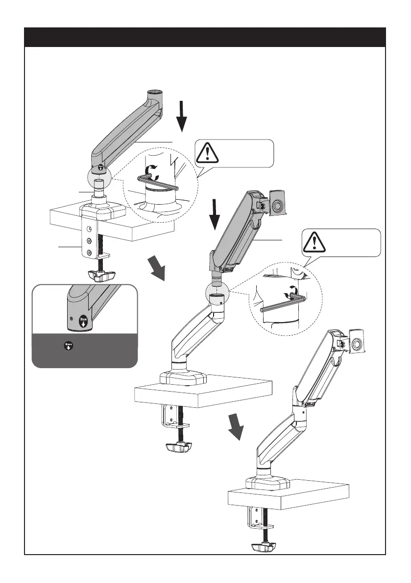 Install the lower arm (B) and the upper arm (A) to the base (C). Secure the arm by tightening the inside screw