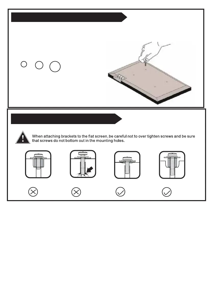 Thread screws by hand into the threaded holes on the back of your TV to select which screw