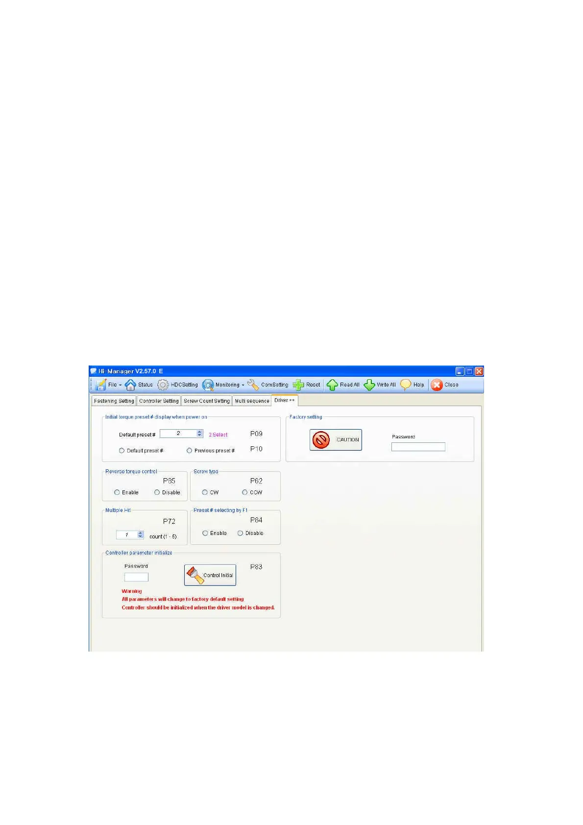 Details of each parameter numbers