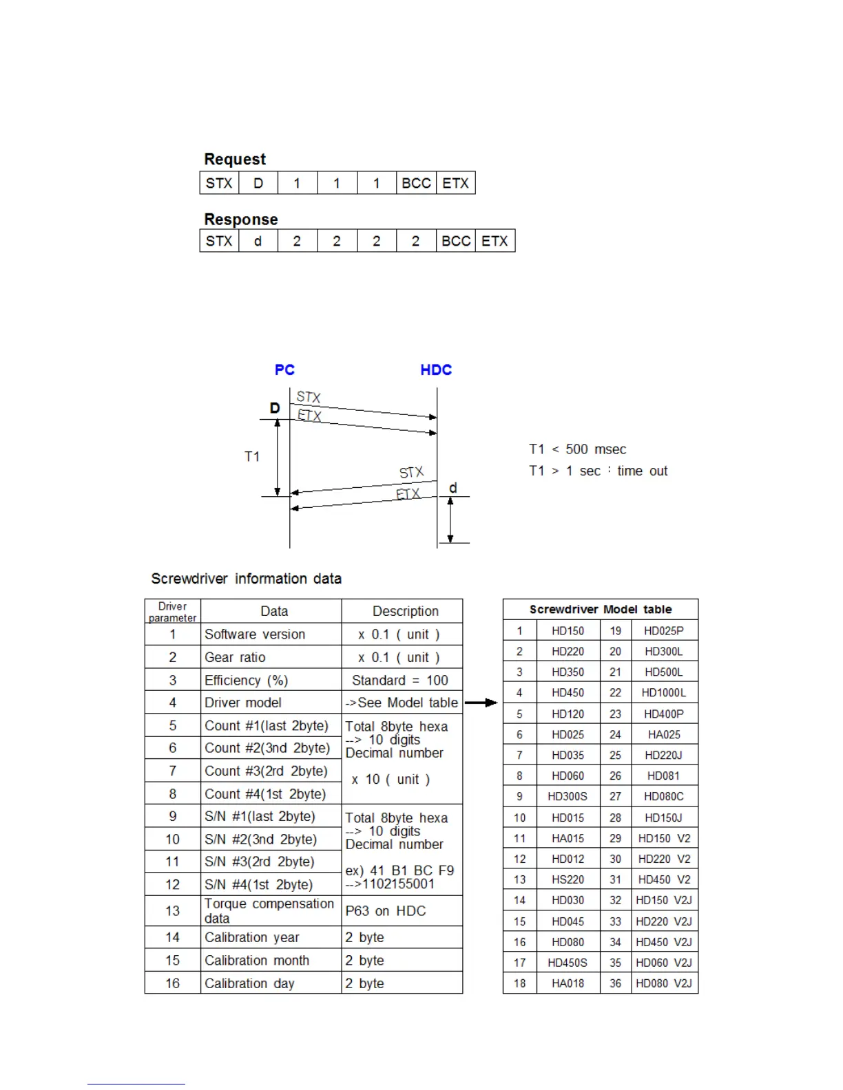 6) Screwdriver information data request and response
