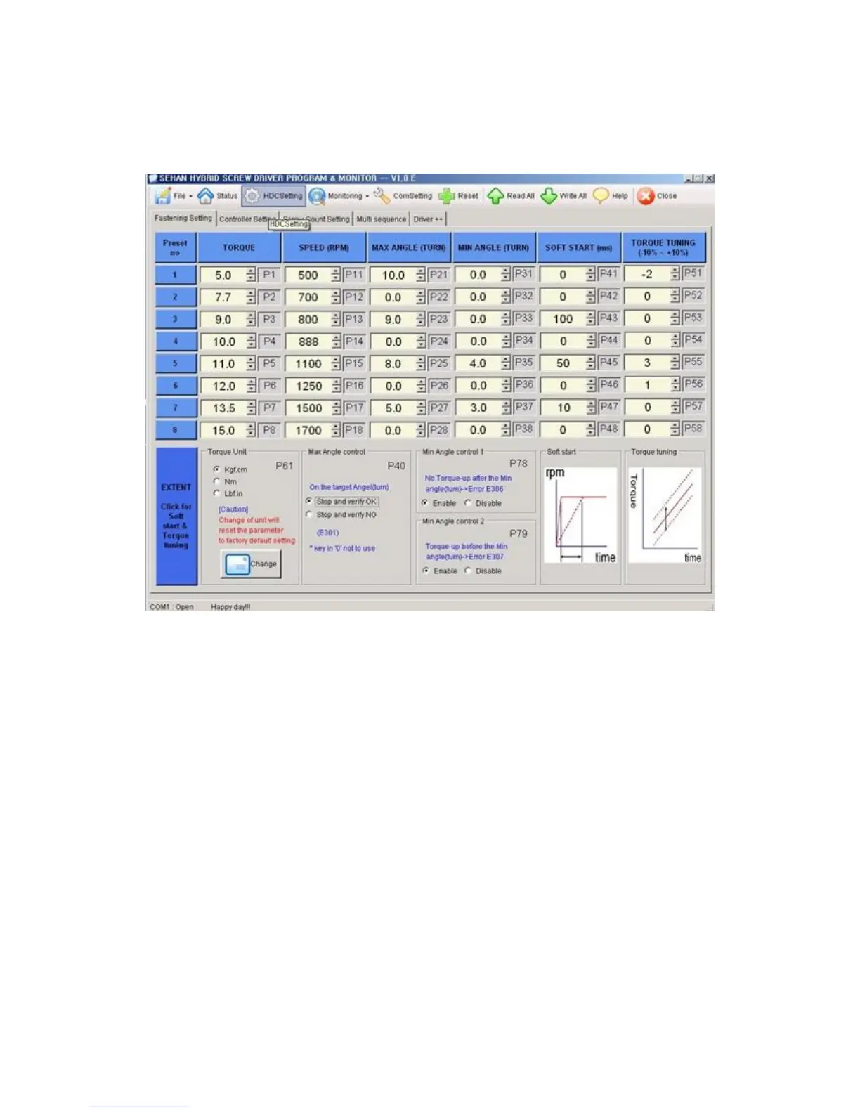 - Select the torque unit before setting other parameters. Otherwise all parameters