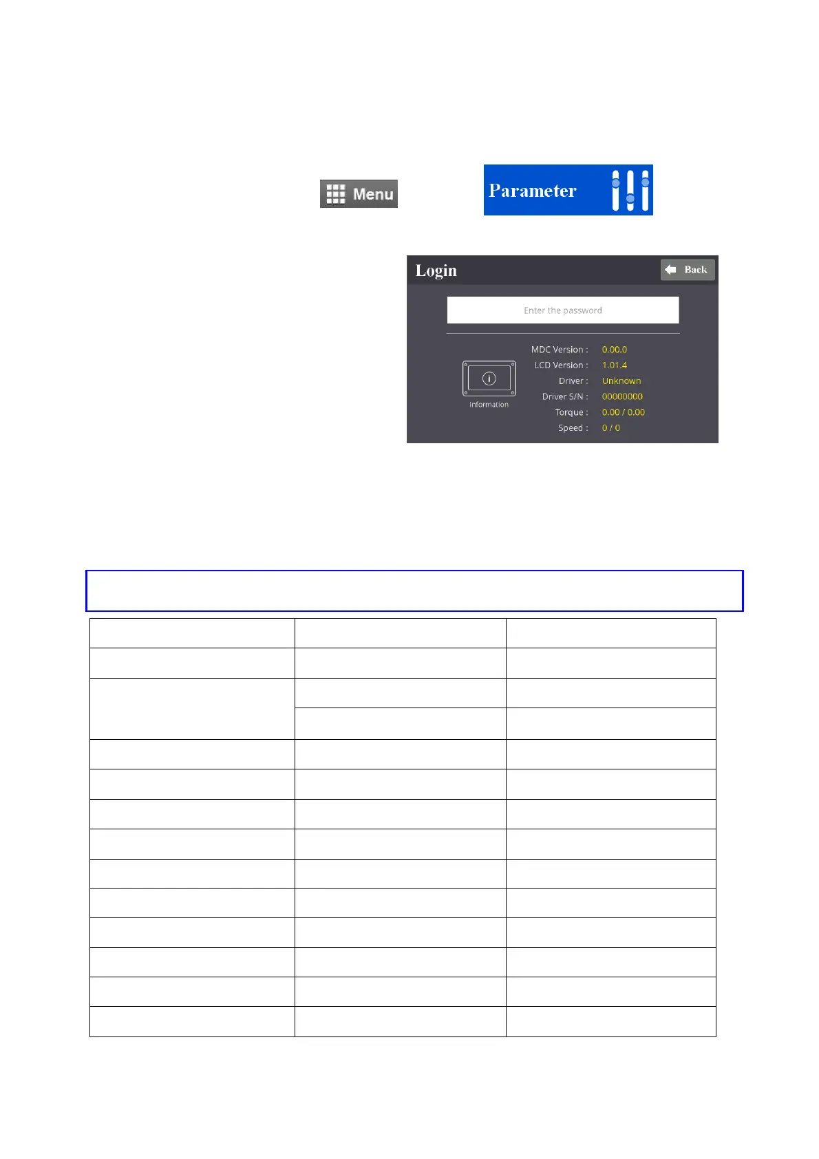 On the log in window, there are tool information about controller firmware version, LCD UI
